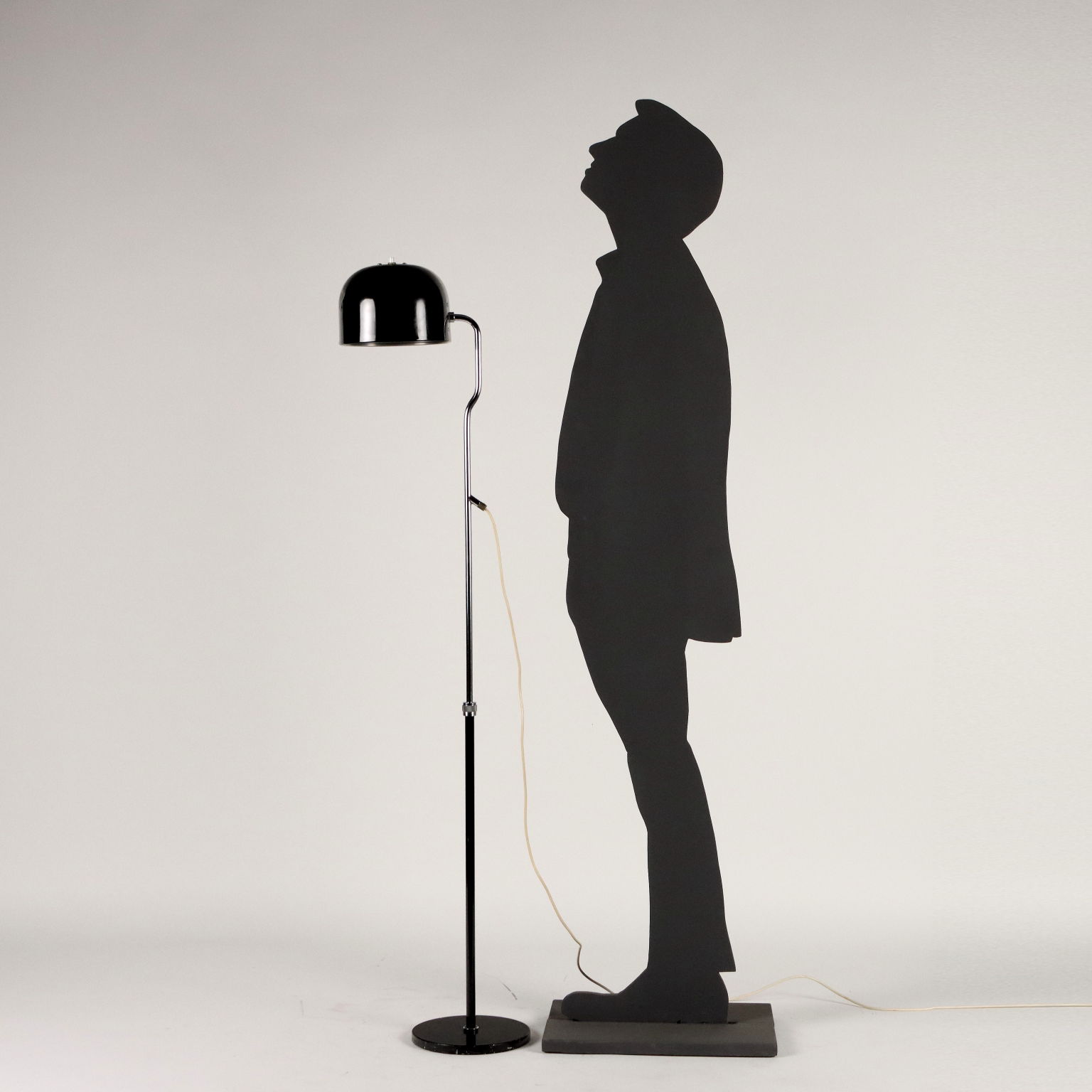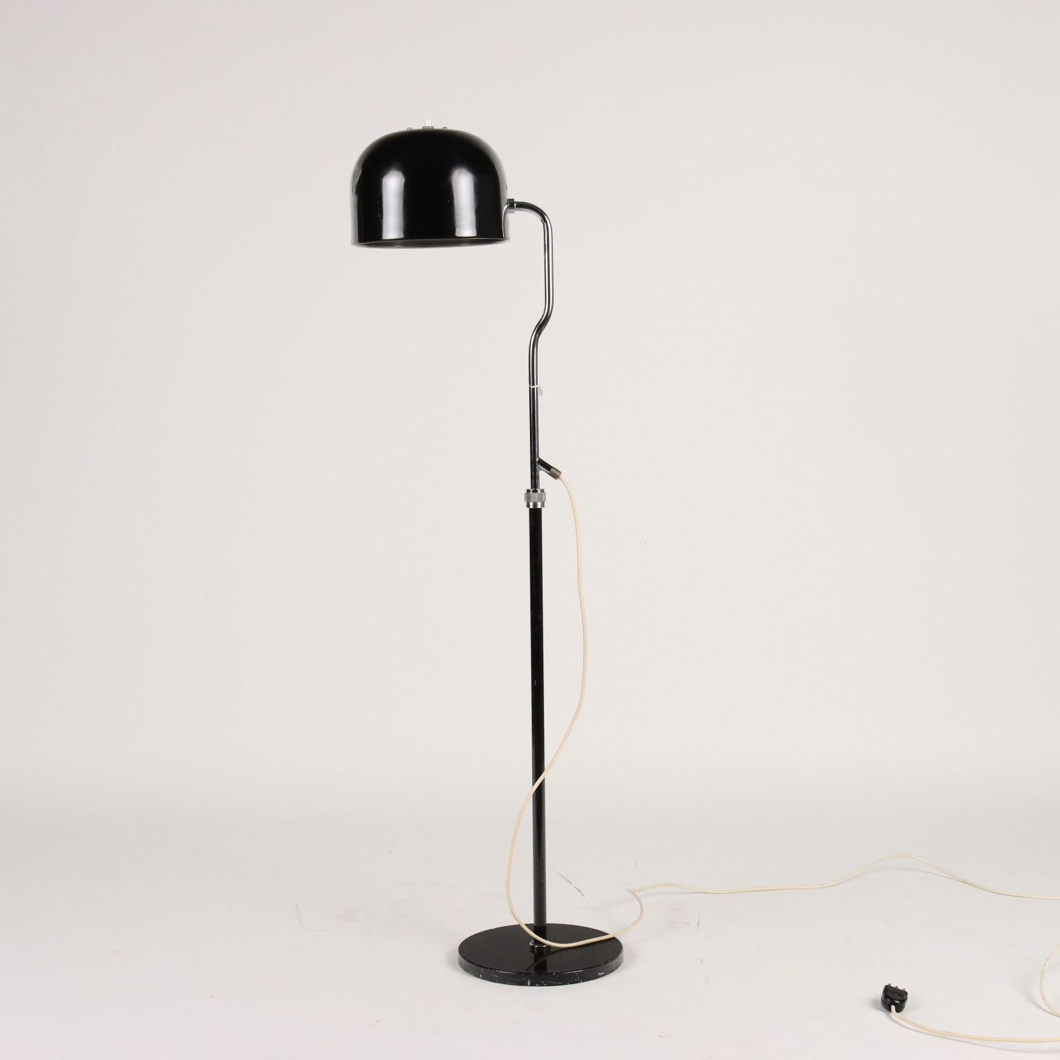 Lampada da terra con stelo ad estensibile per regolazione altezza; metallo e alluminio, smaltati e cromati. Buone condizioni.