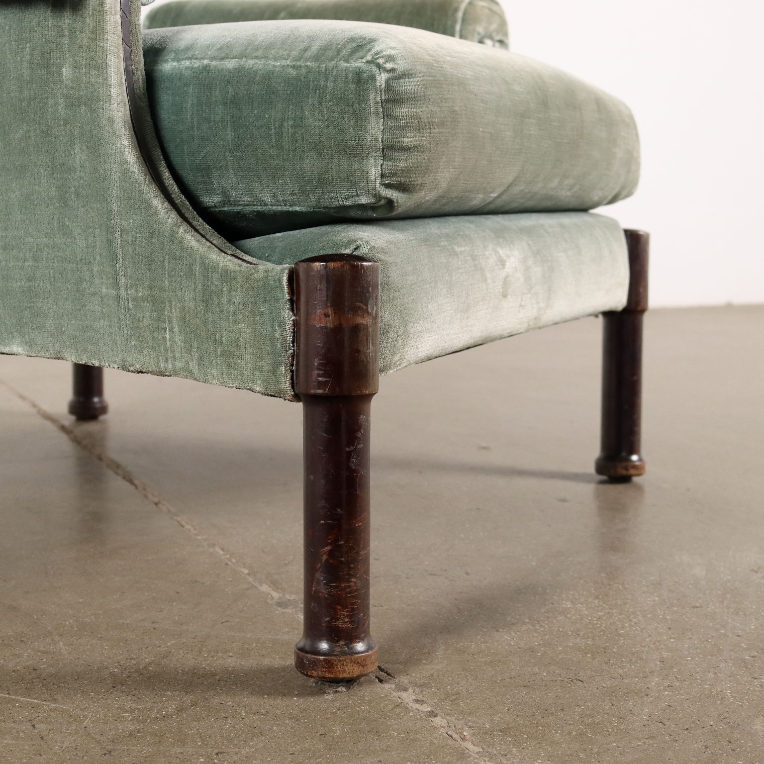 Poltrona; imbottitura in espanso e rivestimento in velluto originali del periodo, legno tinto ebano.