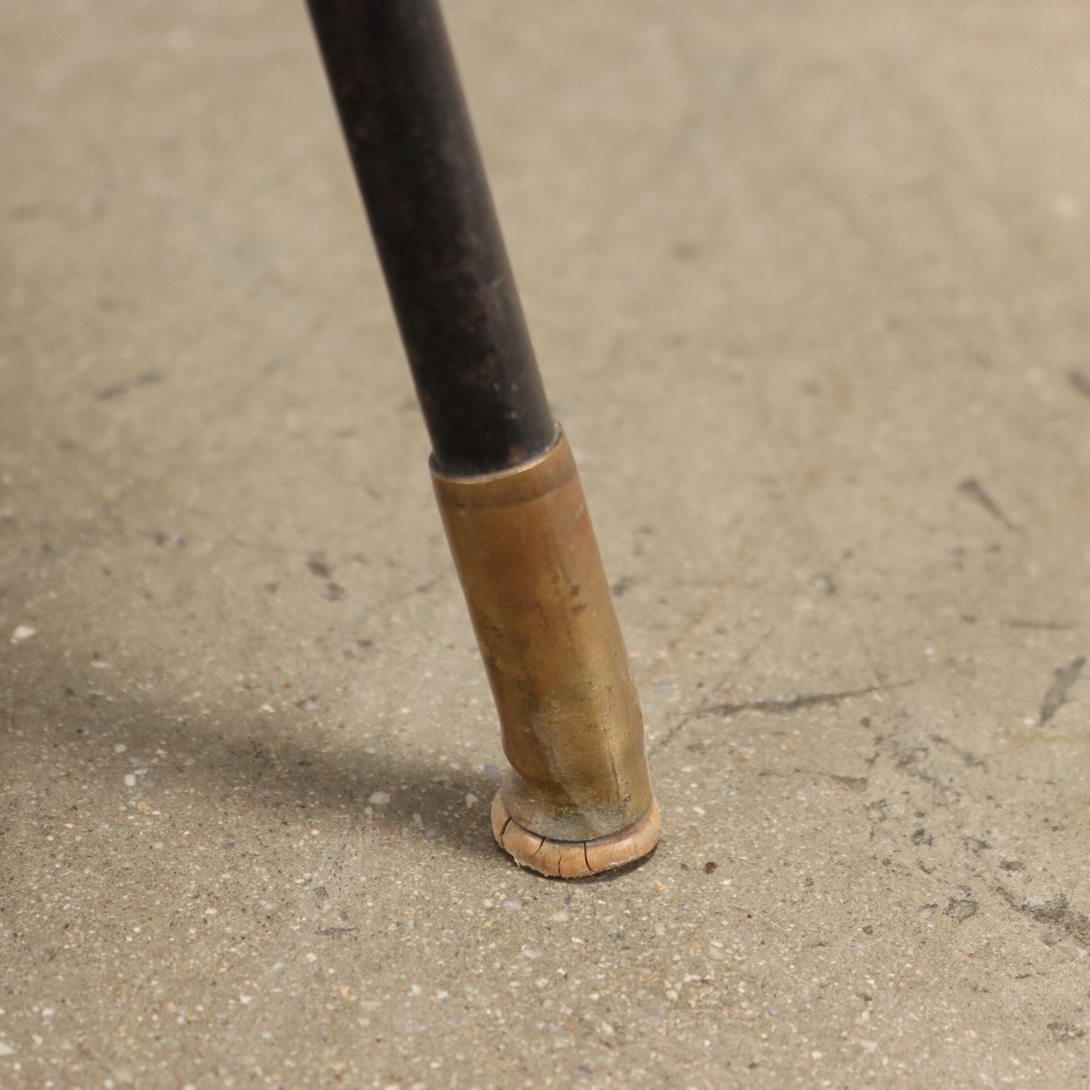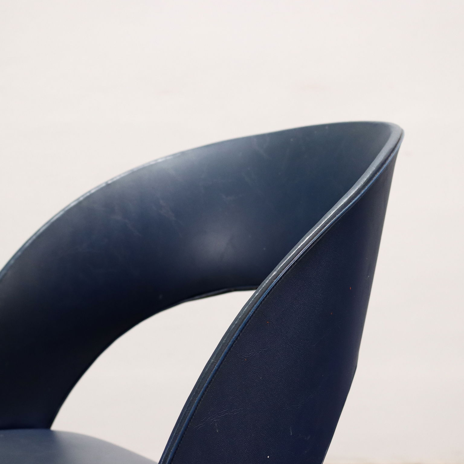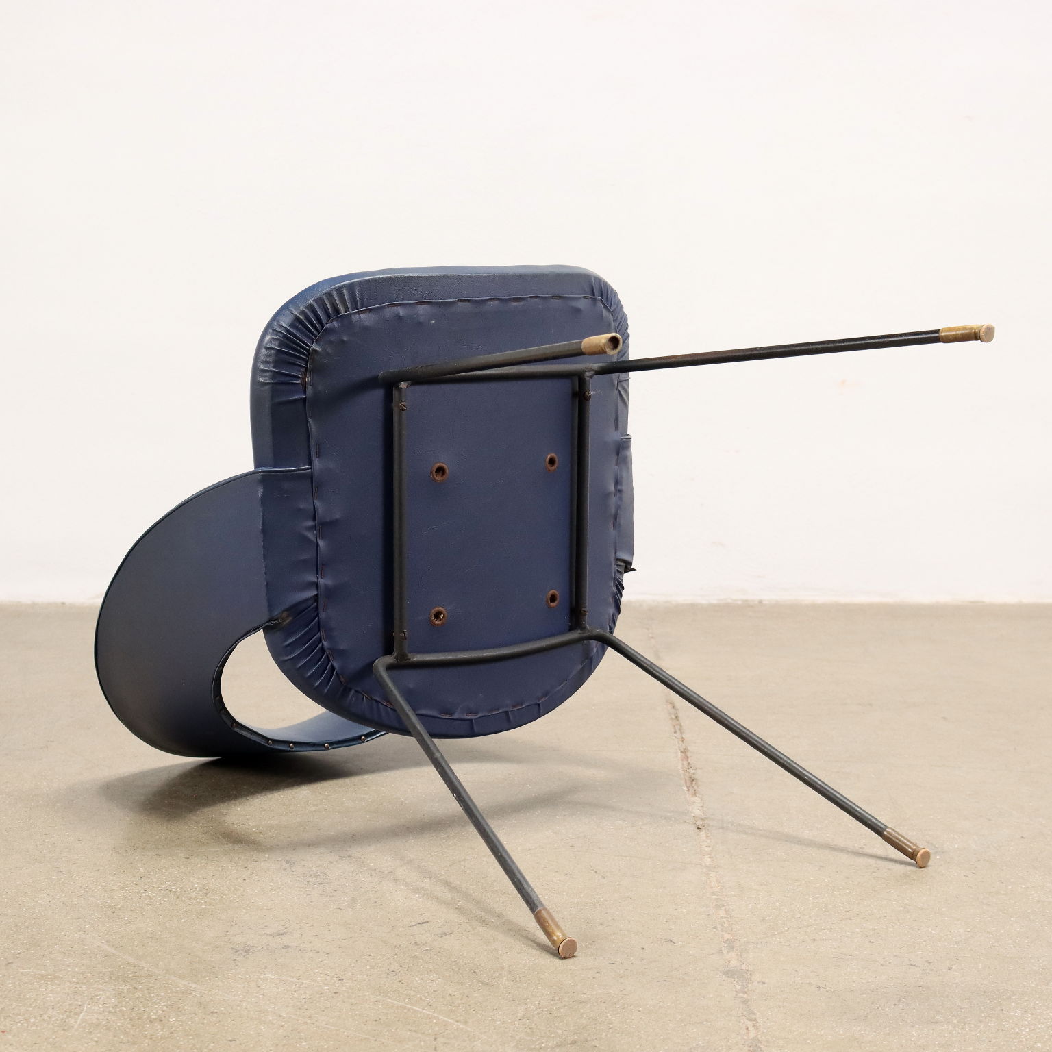 Sedia con base in tondino metallico smaltato con puntali in ottone, imbottitura in espanso, rivestimento in skai.