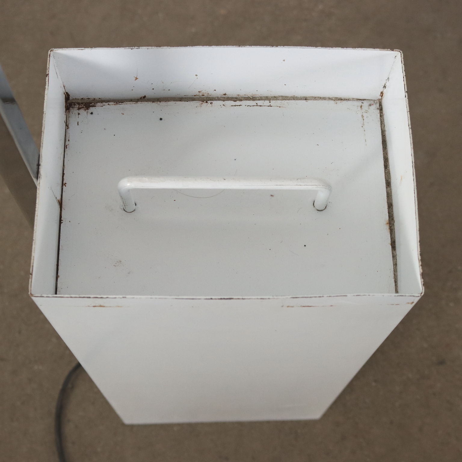 Lampada da terra; base in cemento con involucro in metallo smaltato, acciaio, diffusore in metacrilato.