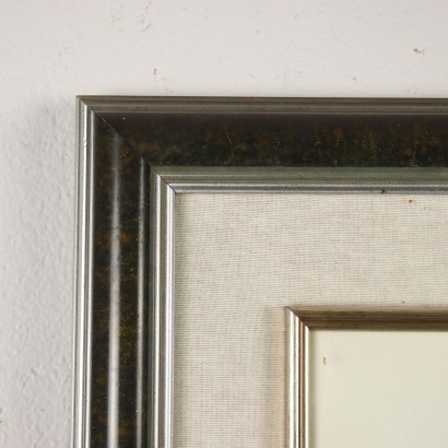 Litografia a colori. In basso a destra la firma a matita, a sinistra il numero di serie 72/110 e il timbro a secco dello Stampatore Alberto Caprini; al centro il titolo. Il grande maestro iniziatore dell'arte Metafisica, dipinse numerosissimi autoritratti, a raffigurarlo in diverse fasi ed età della vita, in costumi differenti e sfondi diversi, che testimoniano anche delle diverse fasi pittoriche che l'artista attraversò. Questo autoritratto, che lo vede proporsi ironicamente in veste di gentiluomo del XVII secolo, appartiene al periodo della tarda età in cui si riavvicinò alla pittura classica e al realismo d'effetto secentesco. L'opera è presentata in cornice.
