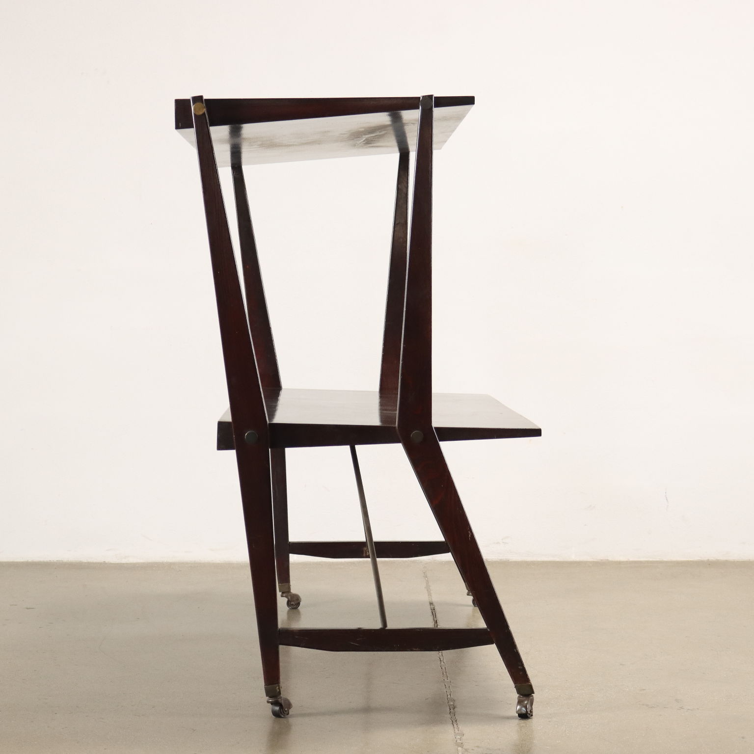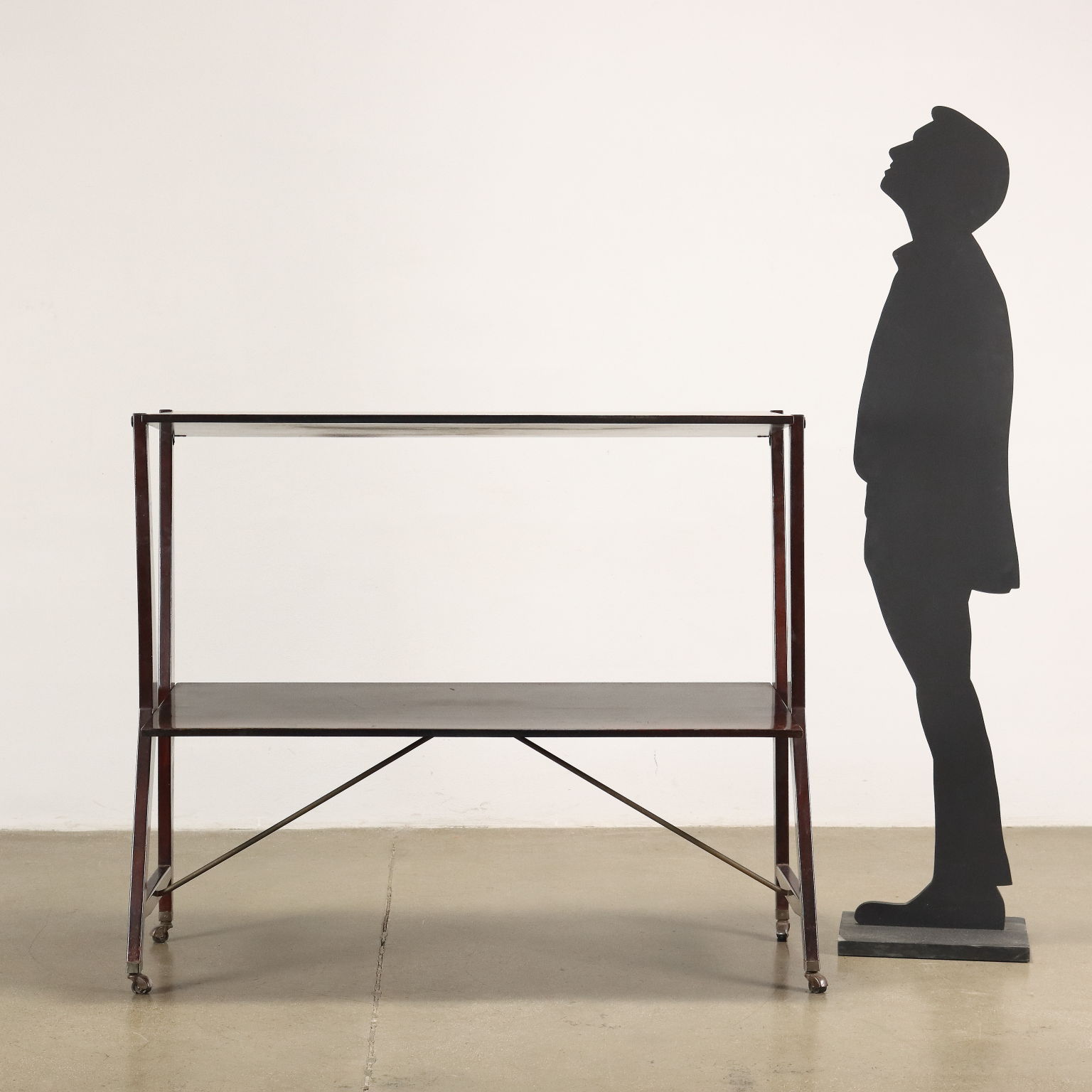 Grande mobile con rotelle porta TV in legno massello e impiallacciato tinti ebano