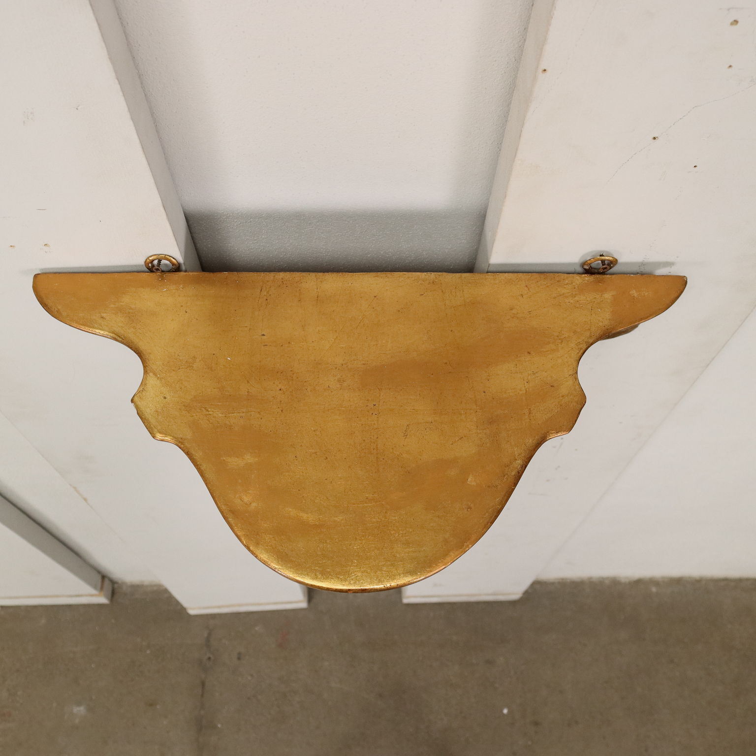 Coppia di mensole intagliate e dorate decorate con volute a ricciolo, motivi fogliacei e mascheroni.