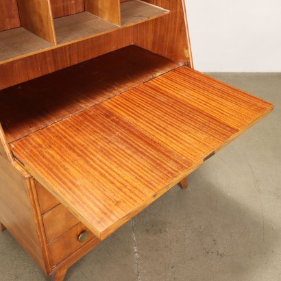 Scrittoio a ribalta con cassetti nella parte inferiore in legno impiallacciato mogano decorato con filettatura intarsiata.