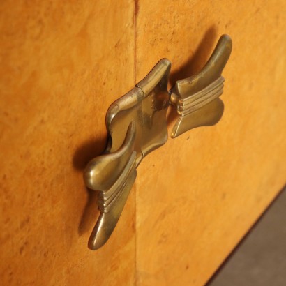 Materiale: Faggio Tinto , Impiallacciatura di Legno Esotico , Impiallacciatura di Radica , Ottone , Specchio , Vetro Opalino