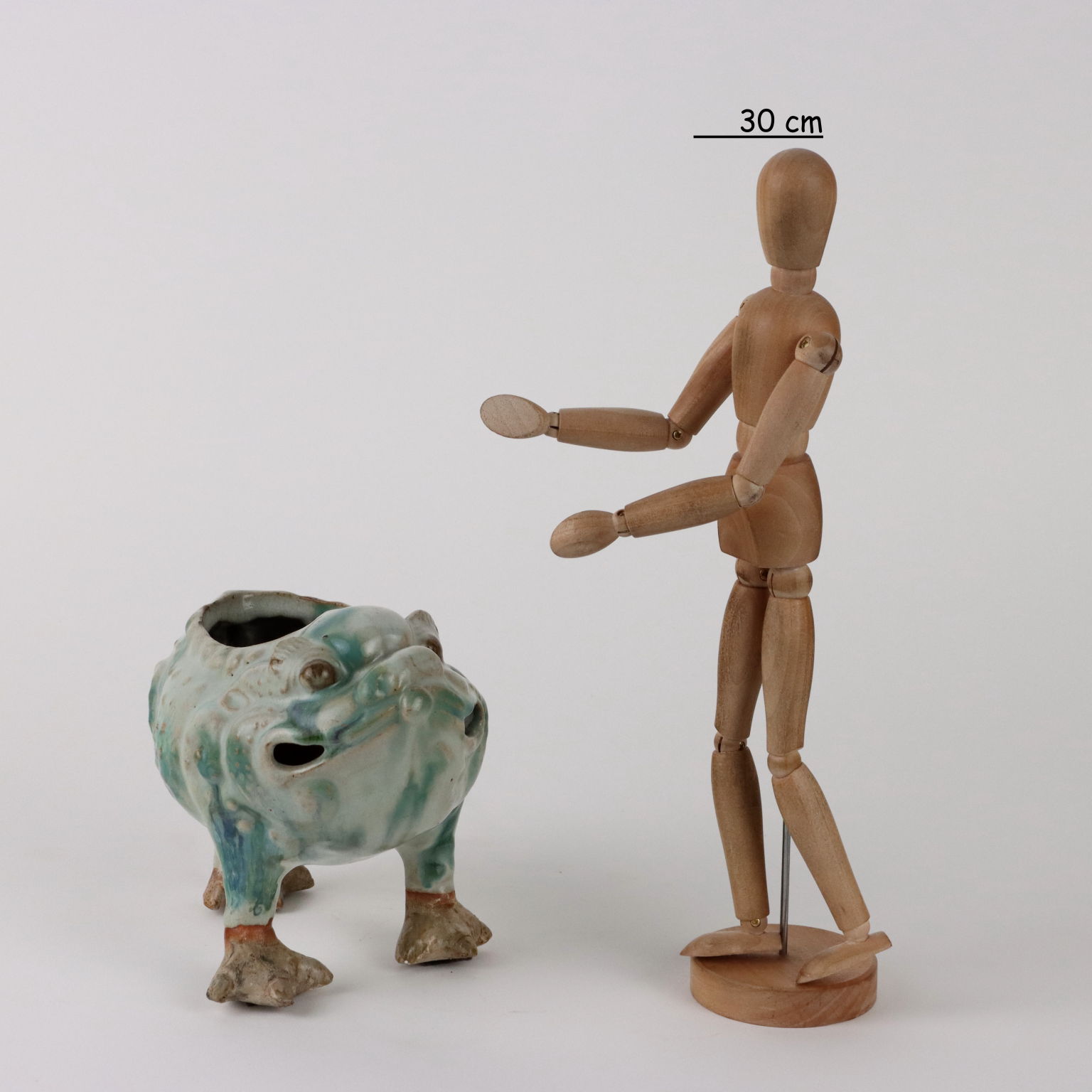 Figura in ceramica smaltata Shiwan rappresentante il rospo a tre zampe "Chan Chu", simbolo di ricchezza.