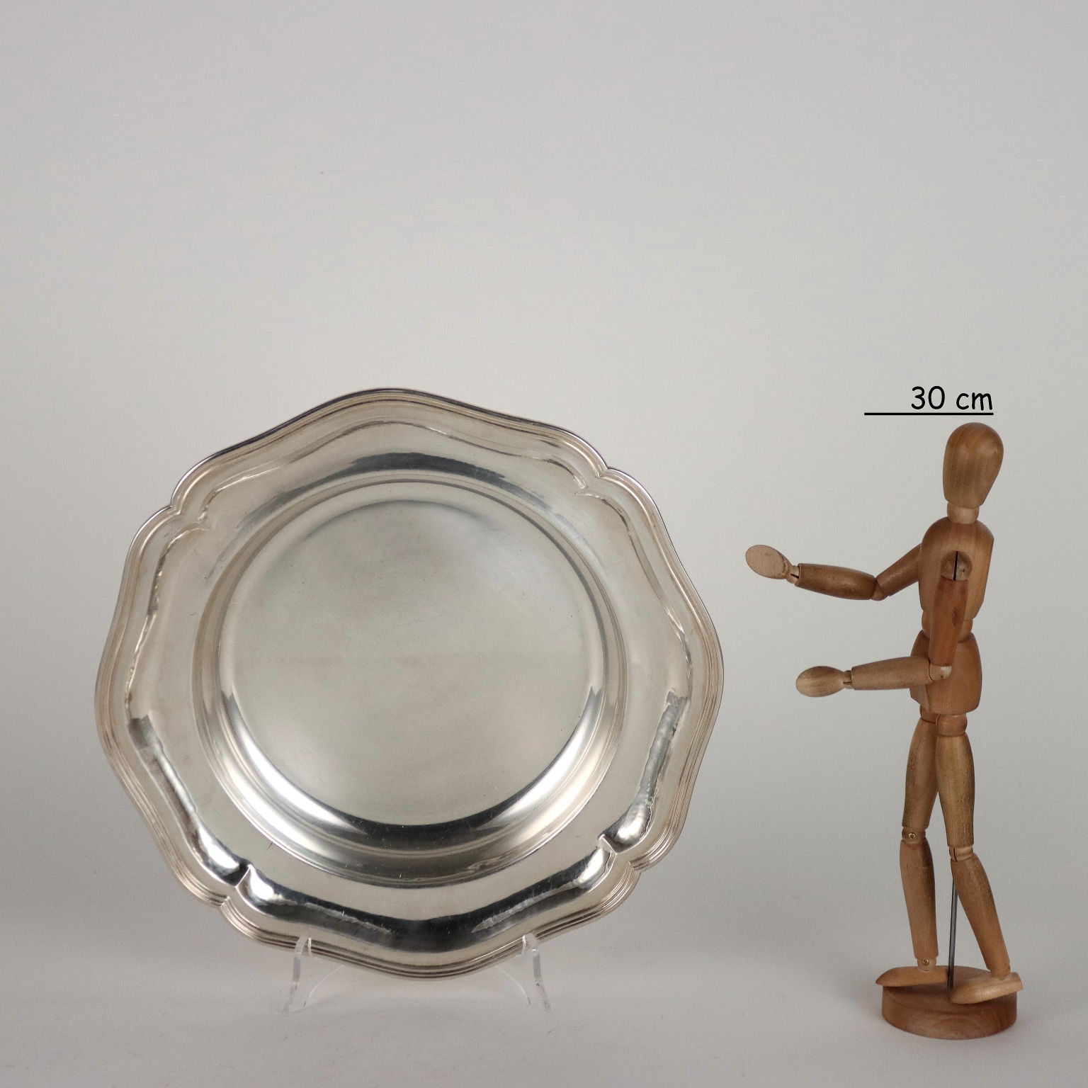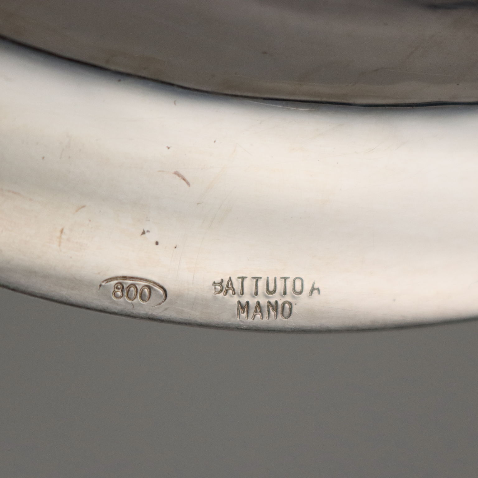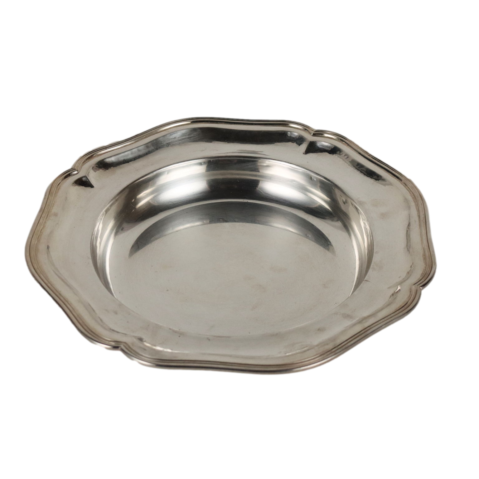 Portafrutta in argento a forma circolare con bordo sagomato. Grammi 788.
