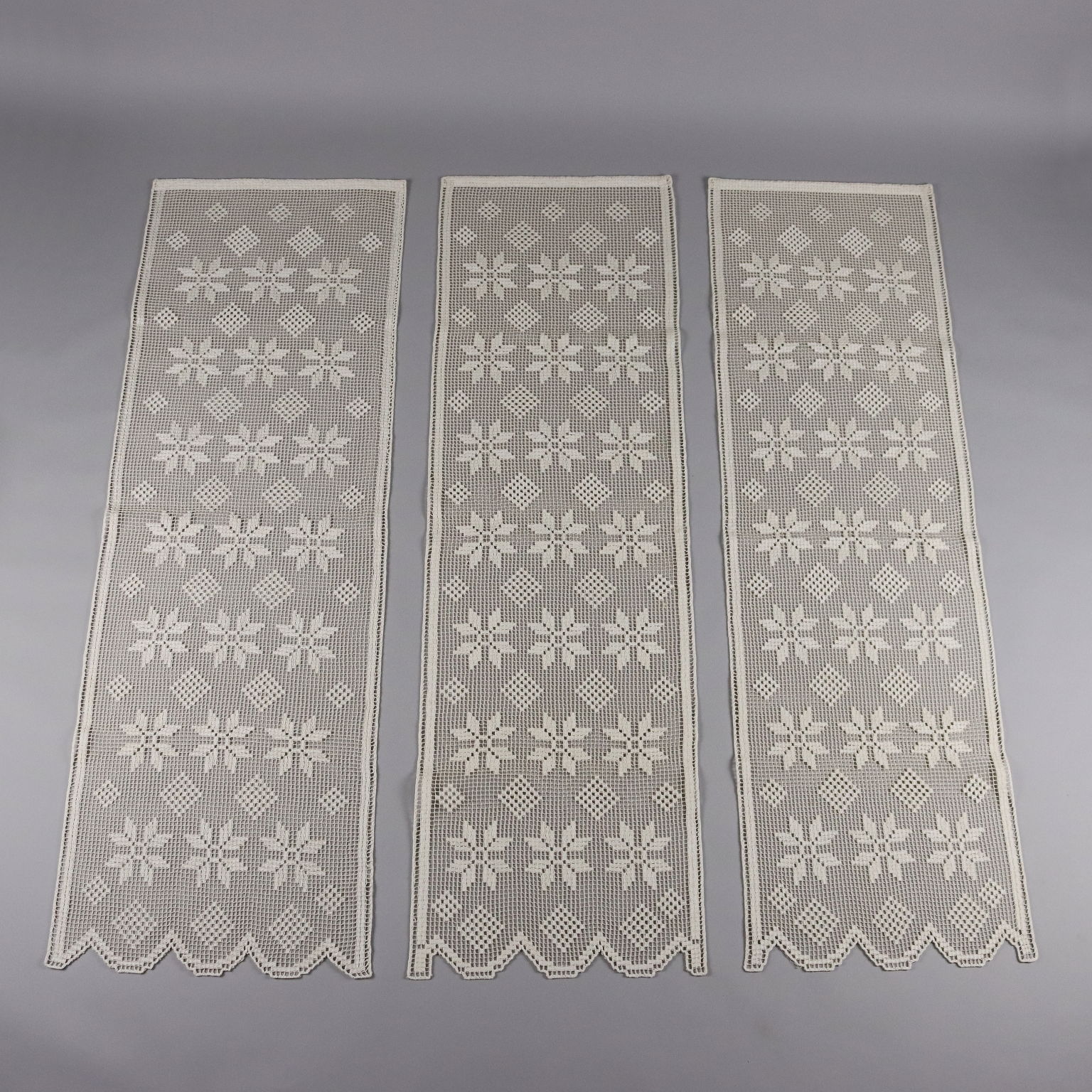 Tris Tende Antiche '900 Filet Cotone color panna Ricami Geometrici