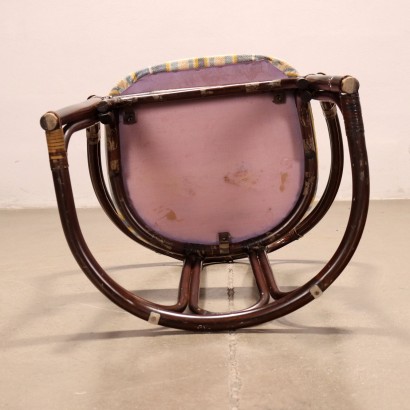 Gruppo di 4 sedie in bambù con seduta in espanso e rivestimento in tessuto.