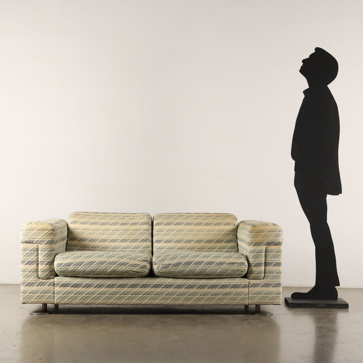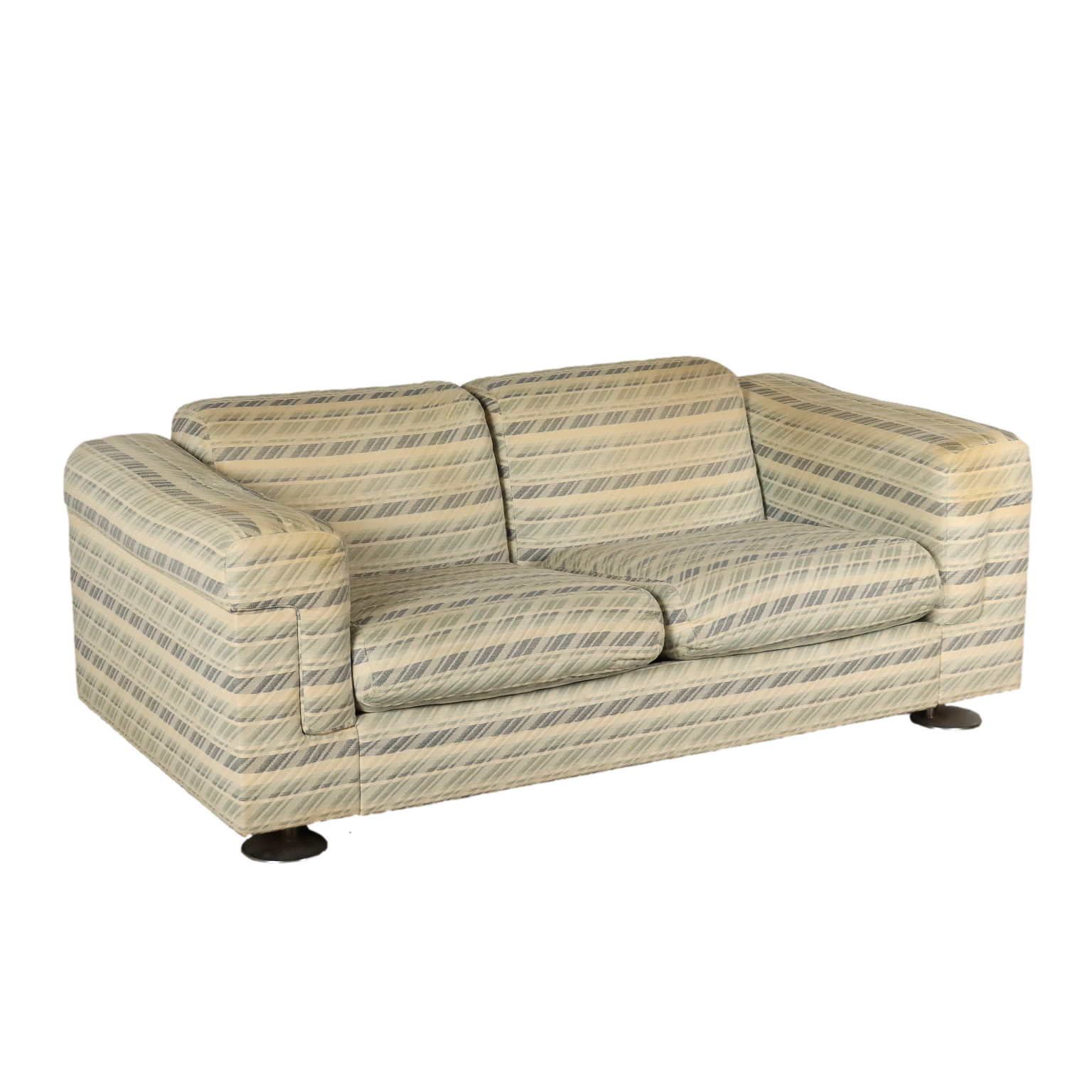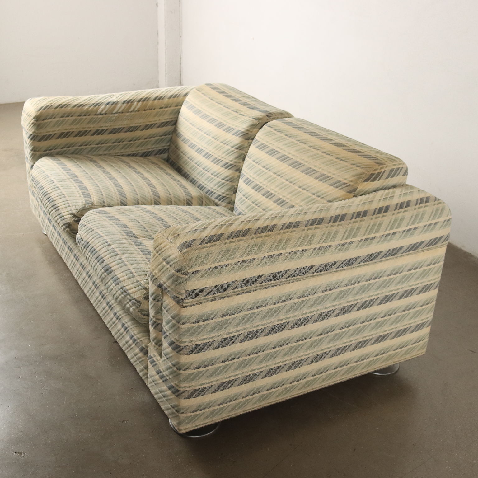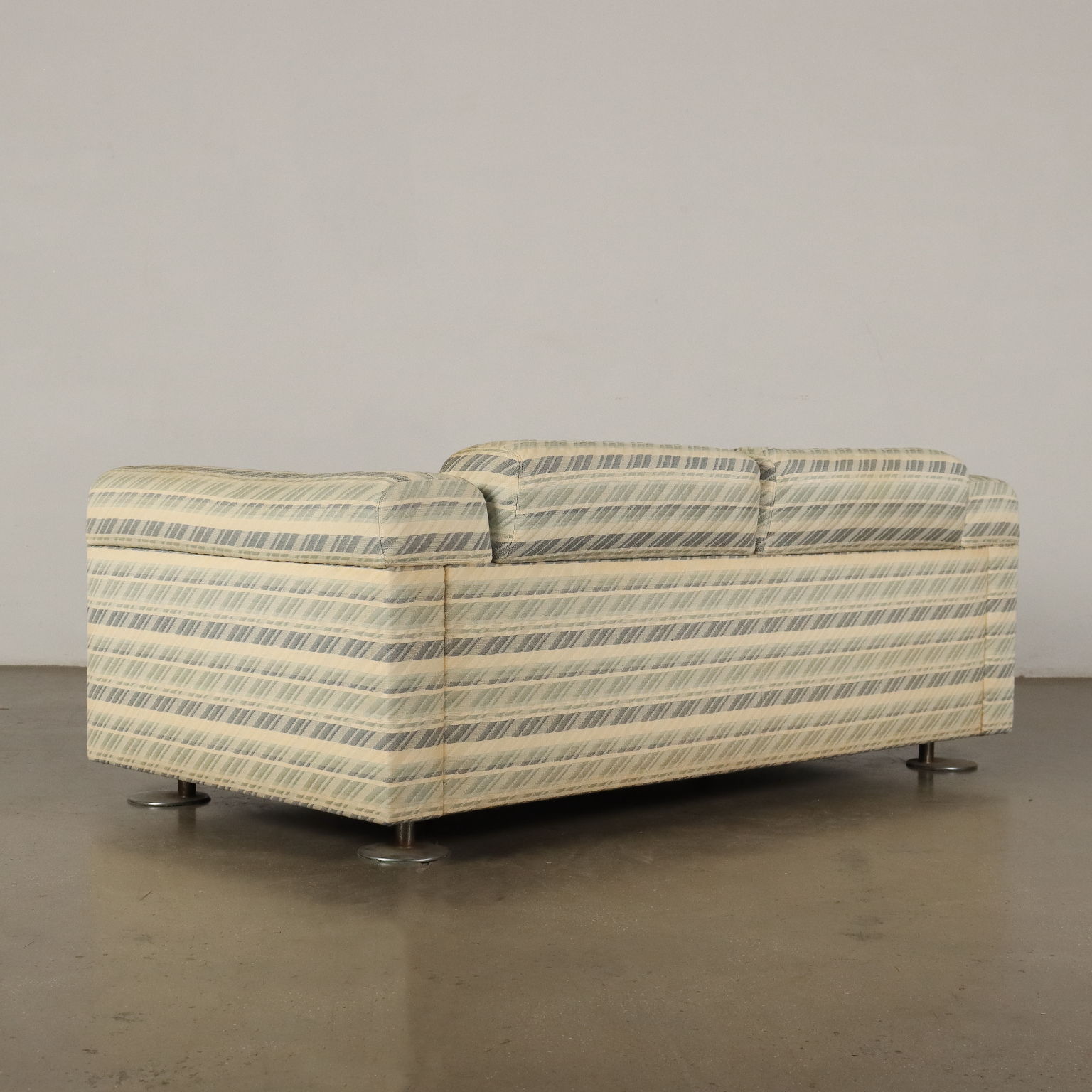 Descrizione Divano a 2 posti con imbottitura in espanso, rivestimento in tessuto e gambe in acciaio cromato.