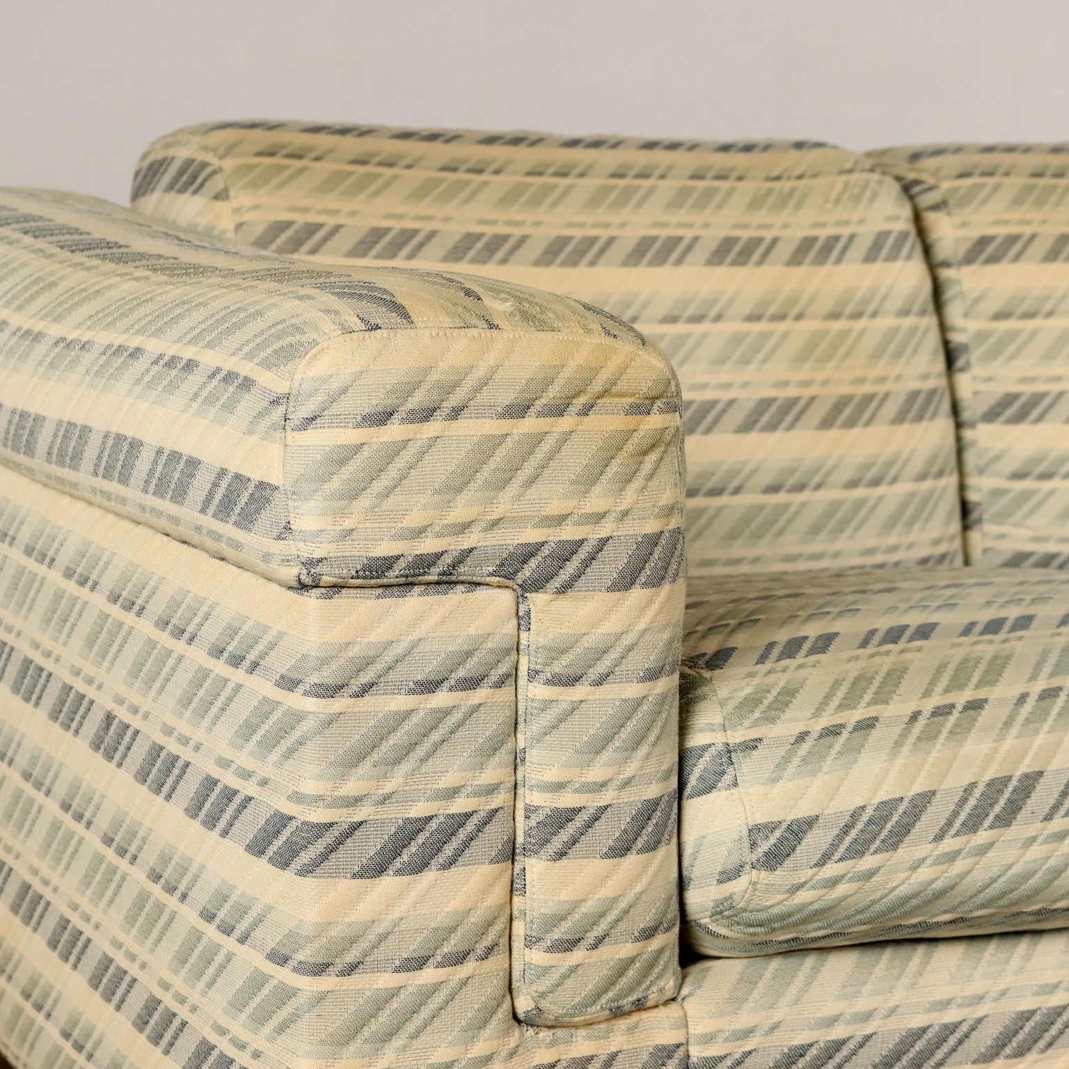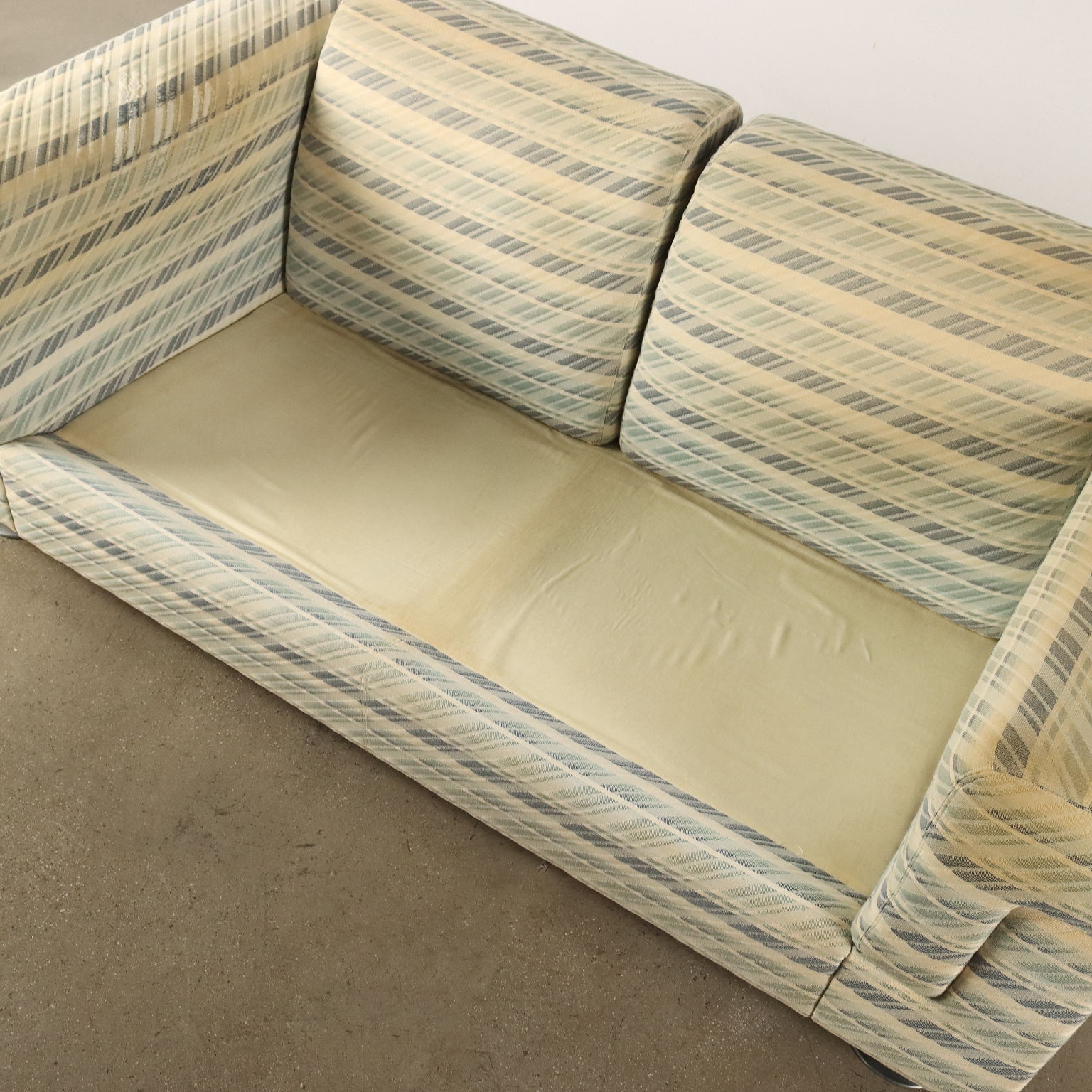 Condizione prodotto: Prodotto in discrete condizioni, tessuto del rivestimento usurato. Il prodotto può essere rifatto dai nostri laboratori, secondo i gusti e le esigenze del cliente, rinnovando l'imbottitura e scegliendo un nuovo tessuto tra le nostre diverse campionature.