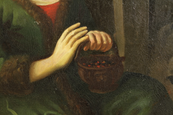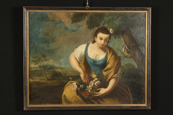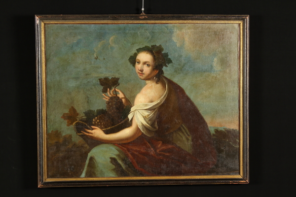 Allegorie delle Quattro Stagionilio su tela. Reintelato, restauri. Le figure allegoriche delle stagioni si diffondono ampiamente in Veneto nel corso del '700, con affreschi per le ville patrizie o dipinti su tele. Alle tonalità calde e brillanti usati per la Primavera, l'Estate e l'Autunno si contrappongono quelle cupe dell'Inverno, come evidente nella nostra versione.