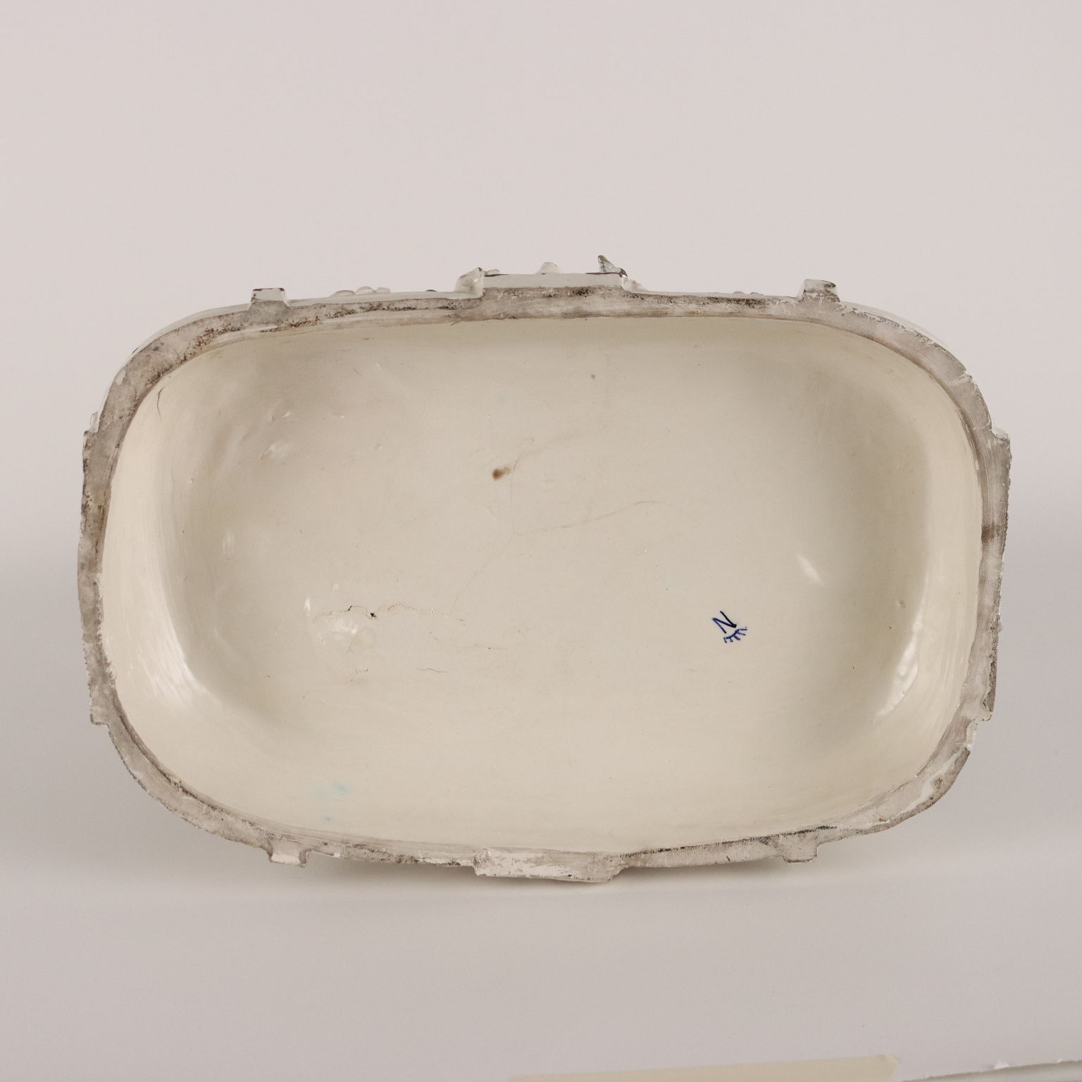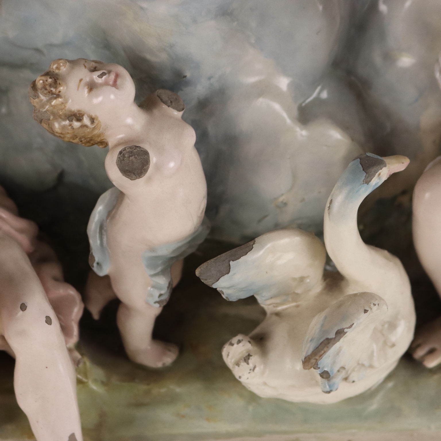 Gruppo scultoreo in ceramica policroma raffigurante Leda e il cigno. Sotto la base marchio della manifattura.
