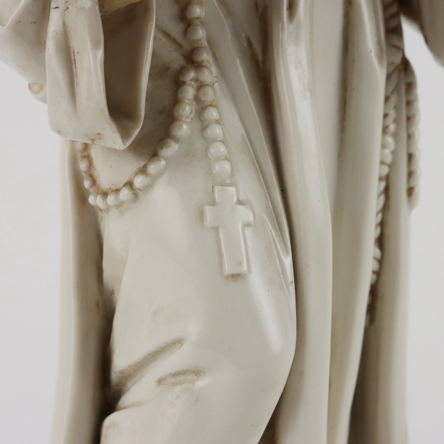 Statua in porcellana bianca raffigurante Sant'Antonio da Padova. Sotto la base marchio della manifattura.