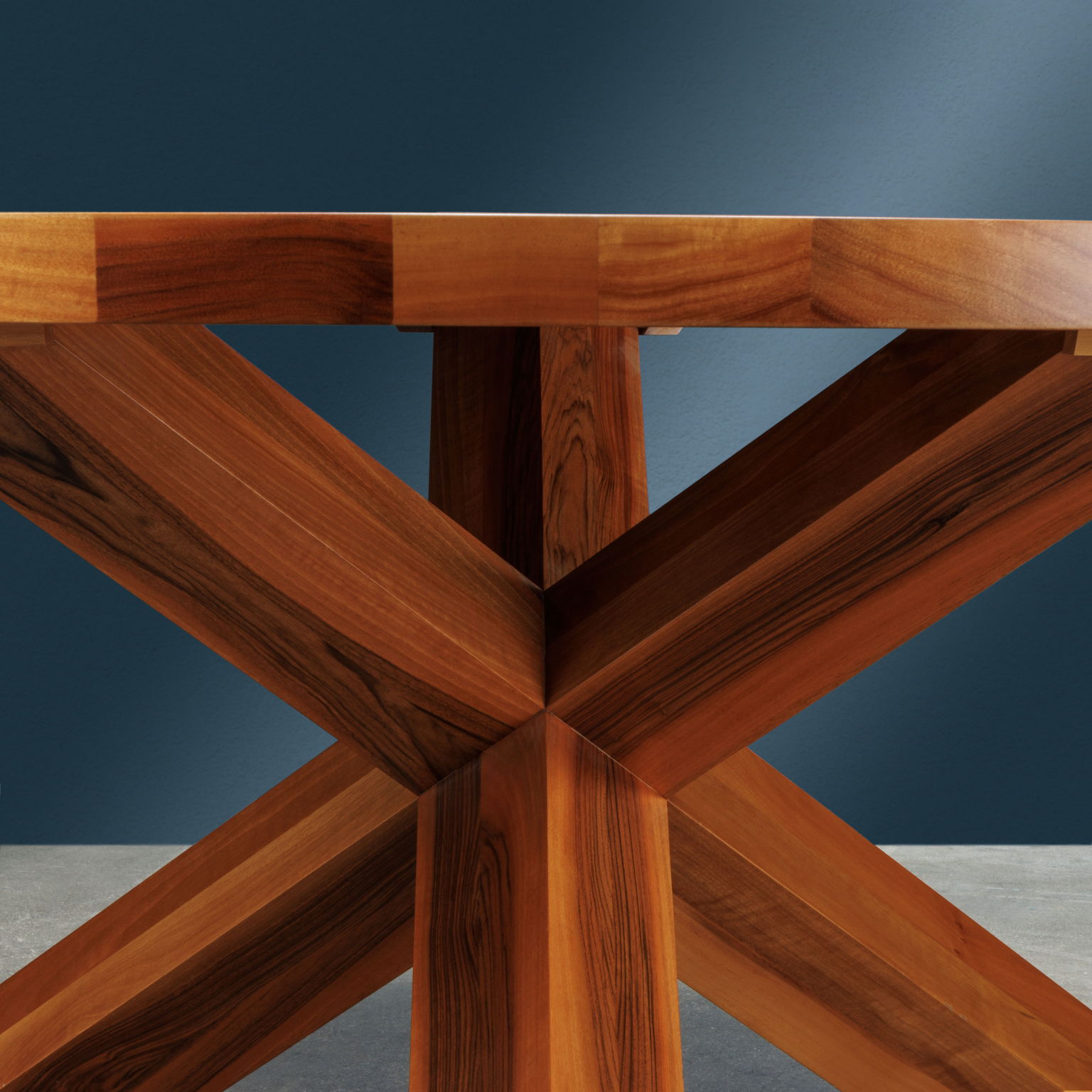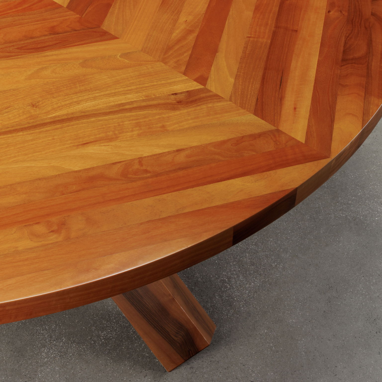 Tavolo tondo in legno massello di noce disegnato da Mario Bellini e prodotto da Cassina anni '80.