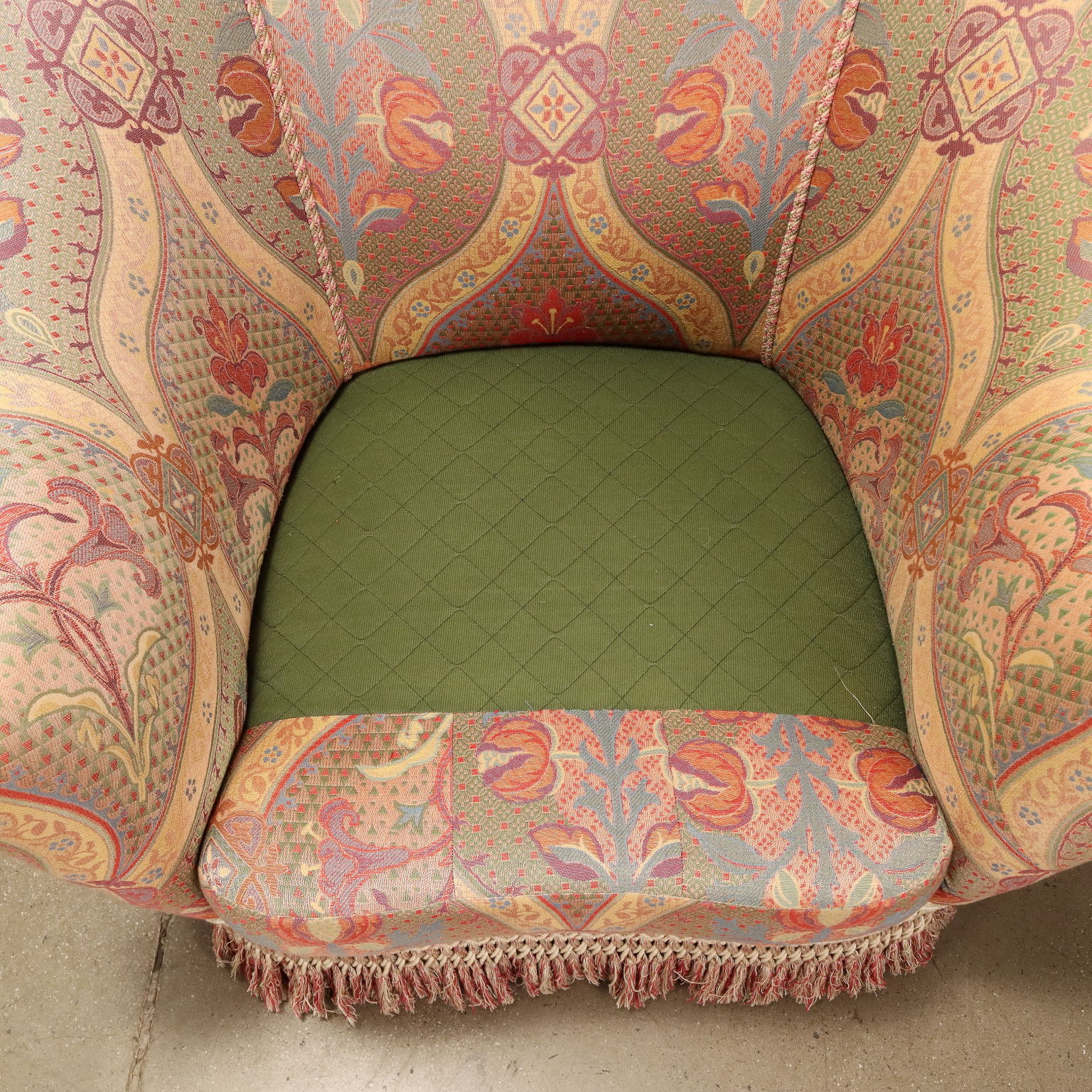 Prodotto in buone condizioni, presenta piccoli segni di usura (tessuto e frangia non originali del periodo). Il prodotto può essere rifatto dai nostri laboratori, secondo i gusti e le esigenze del cliente, rinnovando l'imbottitura e scegliendo un nuovo tessuto tra le nostre diverse campionature.