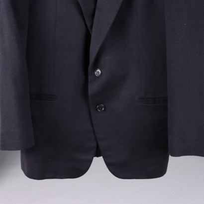 Classica giacca blu da uomo realizzata da Boggi con tessuto in puro cashmere di Loro Piana. Monopetto, collo con revers, tasche a filetto, tre bottoncini sui polsini. Taglia 50; in ottime condizioni