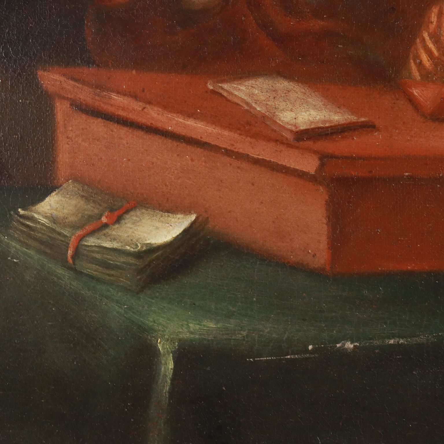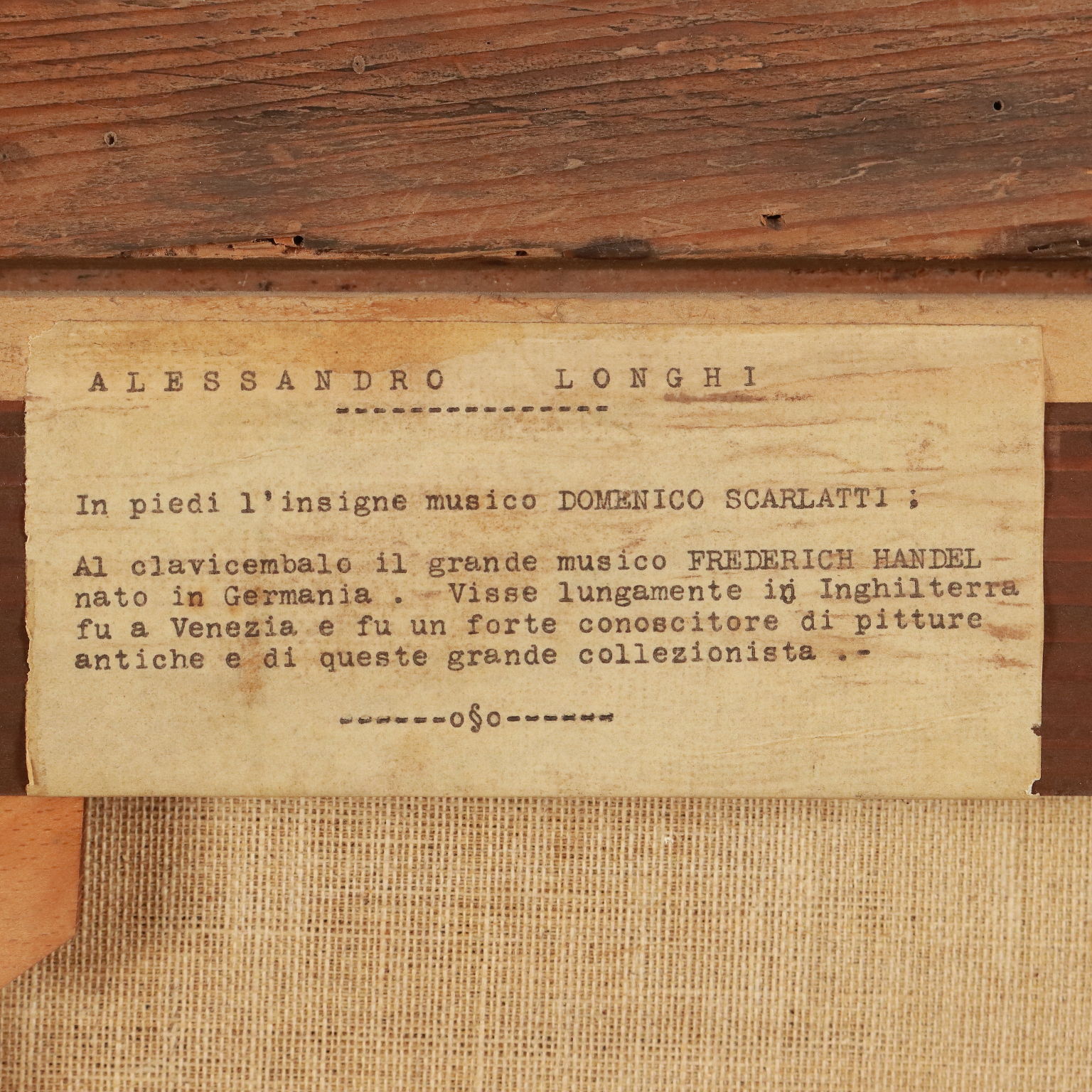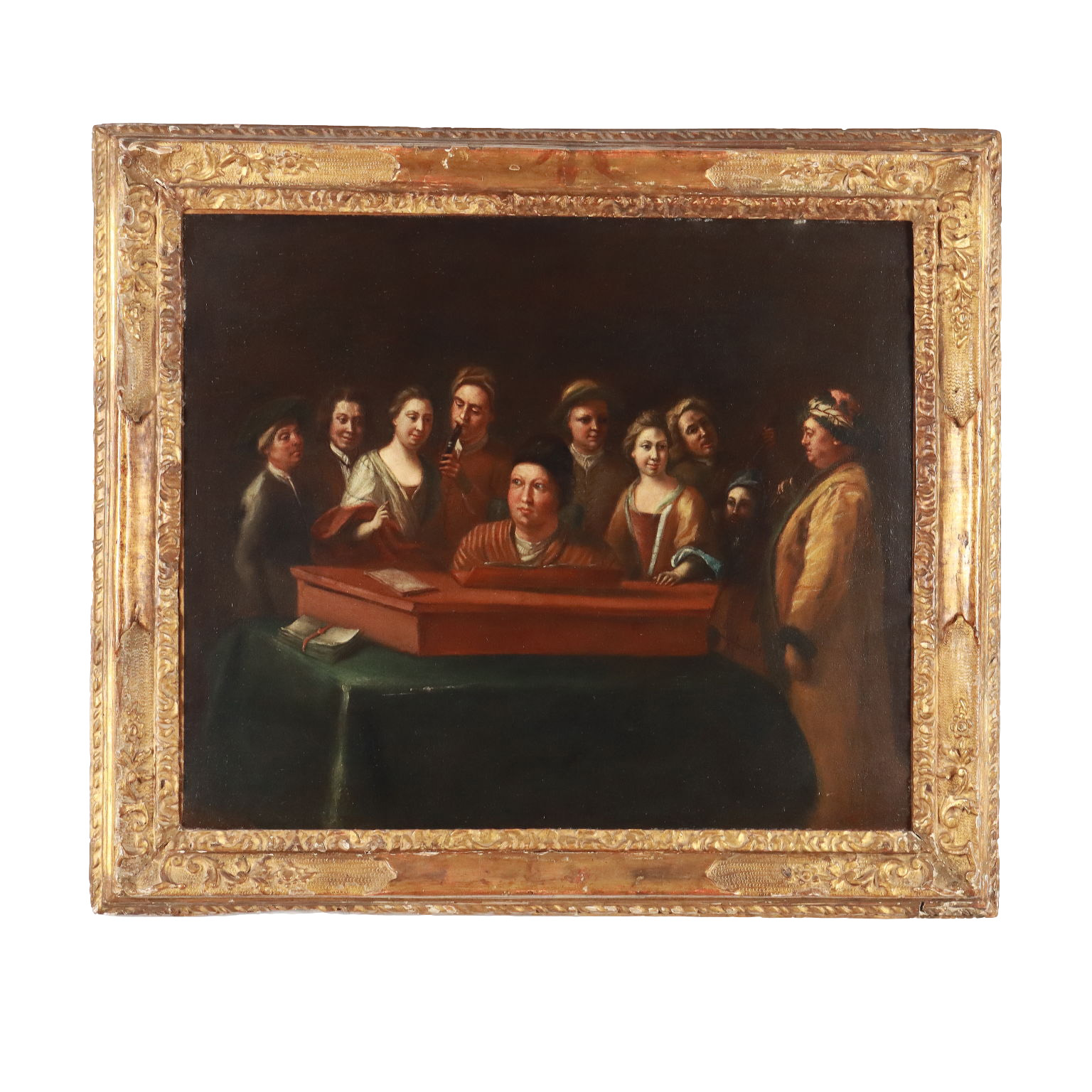 Olio su tela. Nella scena è raffigurato un concertino da camera: al centro il suonatore di spinetta, alle sue spalle il suonatore di flauto dolce e sul lato destro il maestro che dirige, che ascolta intento e muove la mano destra ad accompagnare i movimenti musicali; alle spalle del trio, dame e gentiluomini ascoltano sorridenti e partecipi. Restaurato e ritelato, il dipinto è presentato in cornice del XIX secolo.
