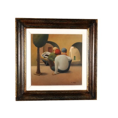 Olio su tela. Firmato in basso a destra. Ulteriore firma al retro. L'artista fiorentino Roberto Masi si è distinto per una pittura fatta di elementi plastici, in cui anche le figure si inseriscono a tutto tondo, e nella quale Masi inserisce accordi di colori e luci, come lui stesso affermò:« La luce nasce dagli accordi di colore. Io cerco sempre questi accordi. I colori devono giocare l'uno con l'altro, rispondersi a vicenda. È il tono di luce che dà alla pittura quel certo tipo di sentimento: ora dolce, ora malinconico, ora nostalgico, ora gentile» L'opera è presentata in cornice.