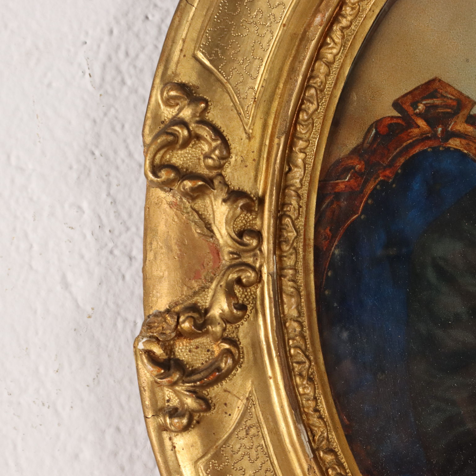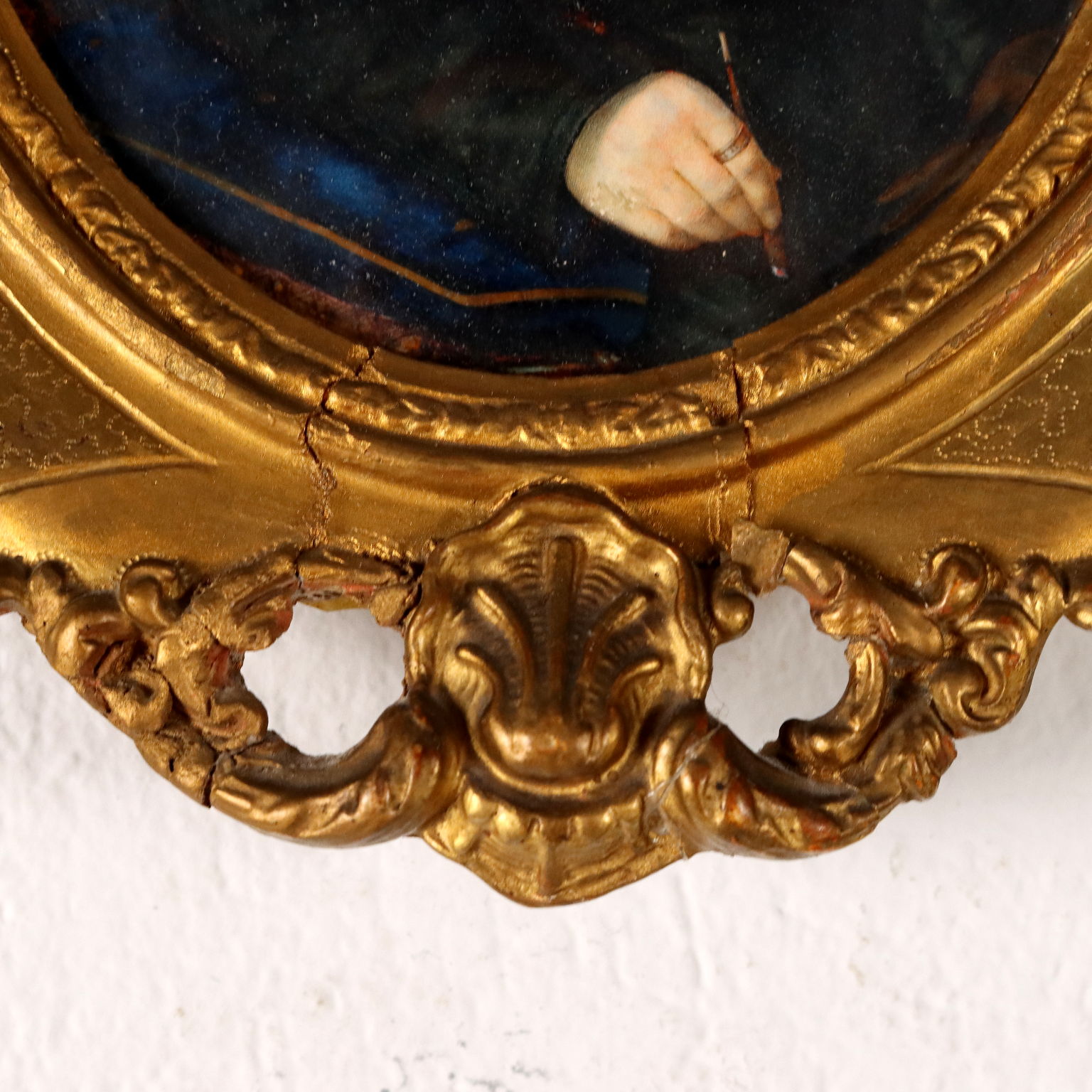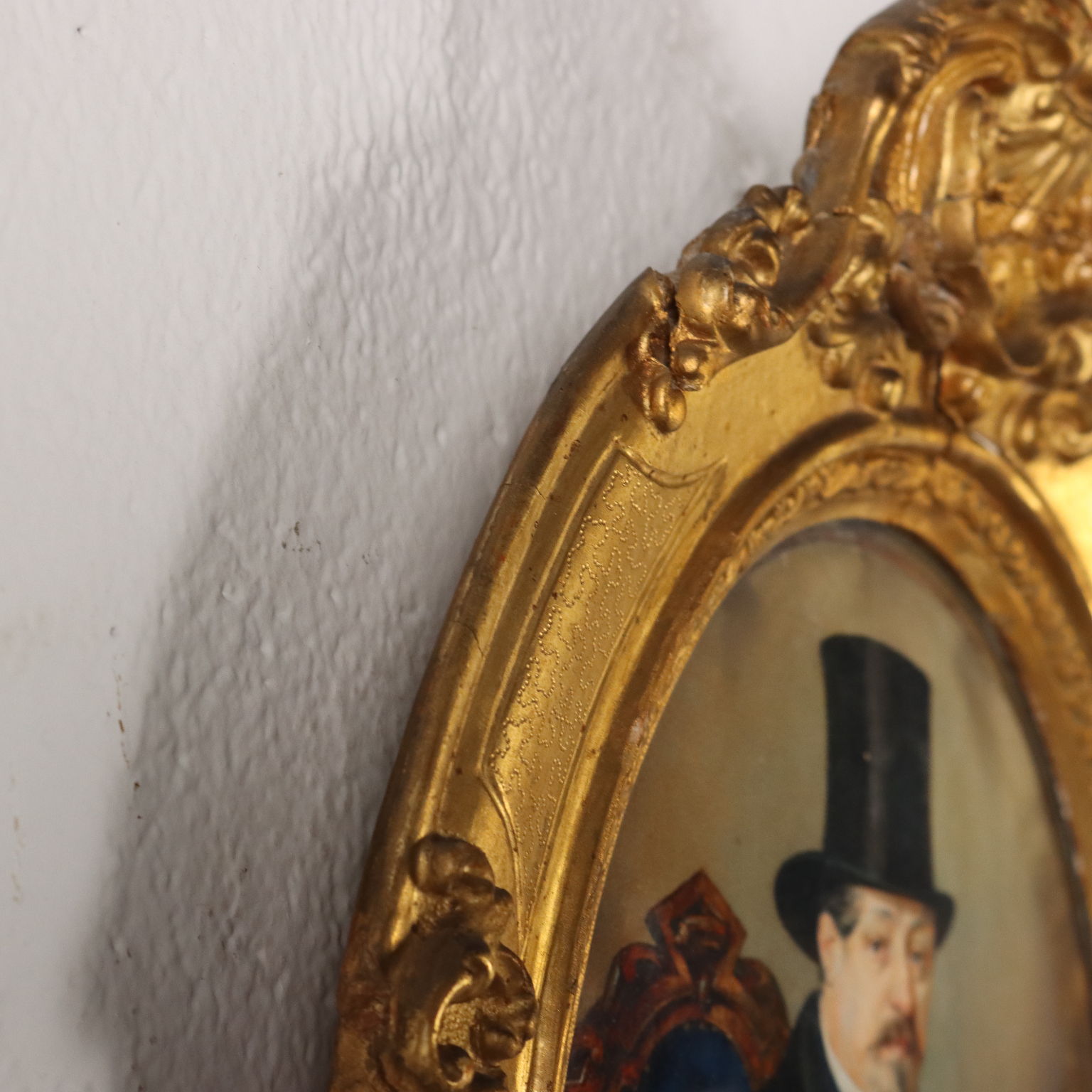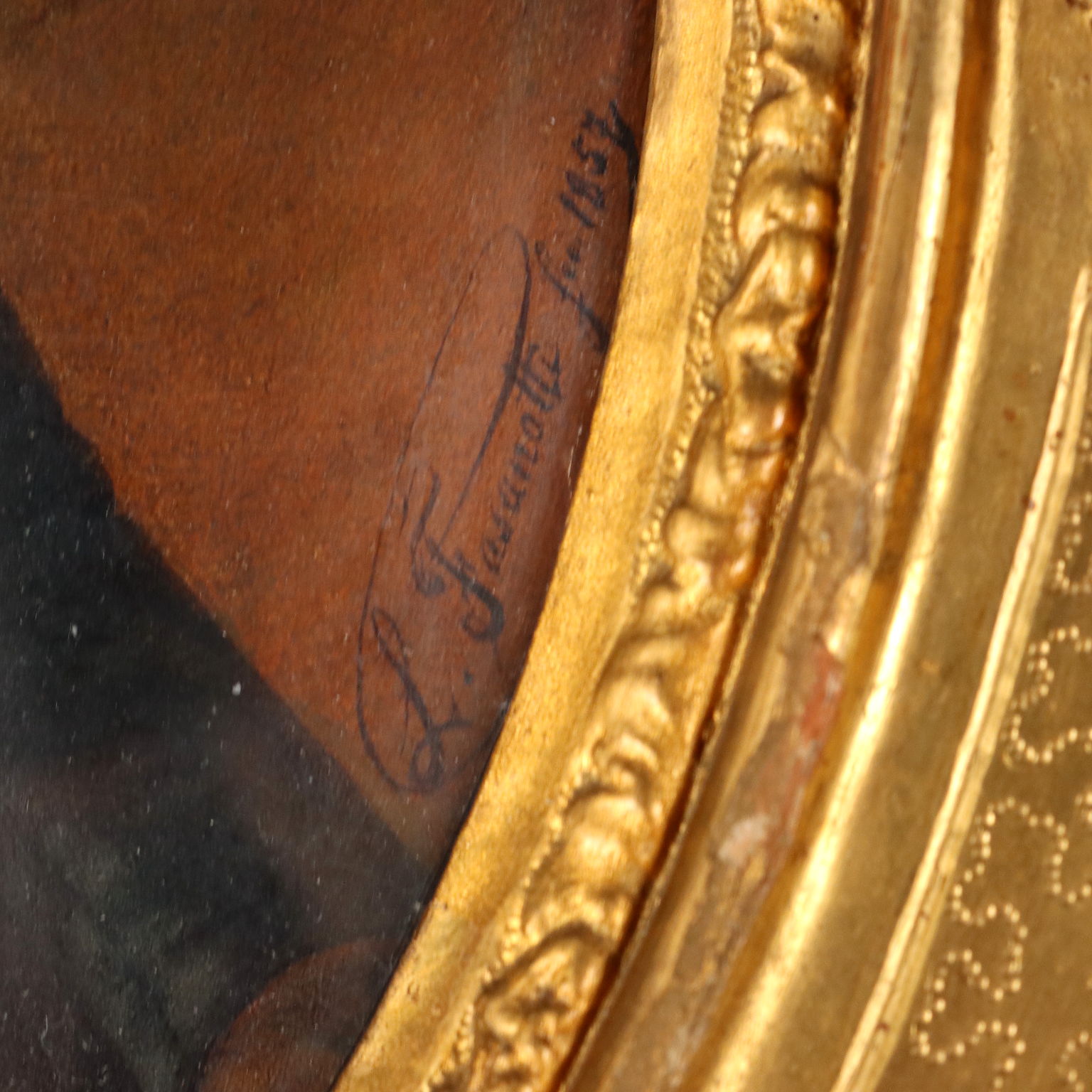 Tecnica mista su cara. Firmato L.Fasanotti e datato in basso a destra. l piccolo ritratto è presentato in cornice in legno intagliato e dorato di fine '800, con piccole rotture.