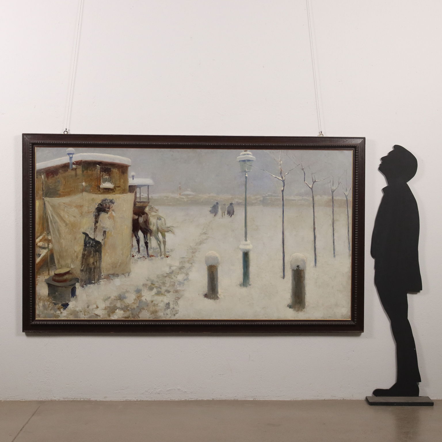 Grande Dipinto attribuito a Aleardo Villa - Scena invernale