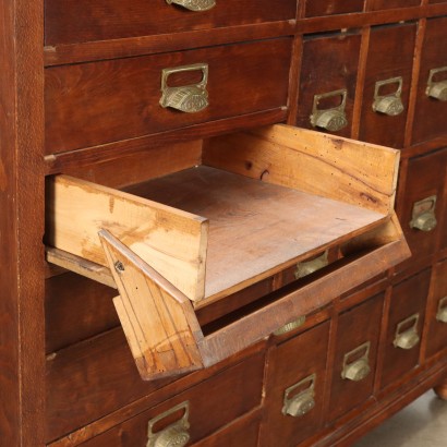 Schedario liberty "Maffiolini Felice Varese" in faggio, Varese inizio XX secolo. Fronte dotato di numerosi cassetti, tra cui i più grandi incolonnati nella sezione di sinistra presentano frontale a calatoia; maniglie in ottone, interni faggio e rovere. Piedi torniti aggiunti successivamente. Presenta targhetta recante il nome del produttore "Pr. Fabb. Mobili Maffiolini Felice Varese – P. G. Carducci. 6.".