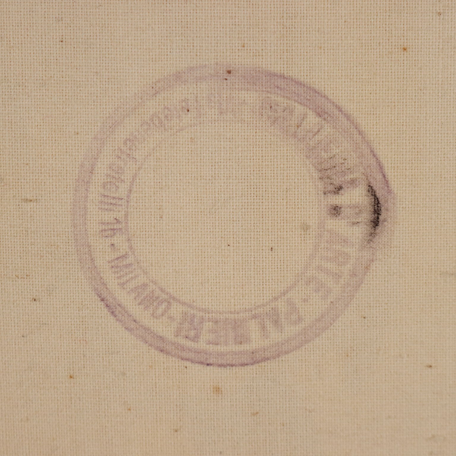 Olio su tela. Firmato in basso a sinistra. Al retro è presente timbro della Galleria storica Palmieri di Milano (oggi non più esistente). L'opera propone i tipici personaggi della pittura satirica di Franz Borghese: si tratta di figure che richiamano, per gesti e abiti, i soggetti del 1910, ritratti con tratti e pose quasi caricaturali, sarcastiche. La produzione di Borghese difatti, dopo un primo periodo connotato da una pittura scura e profonda, quasi drammatica, dagli anni '70 si trasforma in una pittura di satira e sarcasmo, accentuata da una tavolozza cromatica accesa, che prende di mira in particolare al borghesia di inizio secolo. Le tre figure di quest'opera, due uomini ed una signora, sono raffigurati di lato mentre camminano in fila indiana nei loro eleganti abiti da passeggio: le espressioni serie, gli sguardi distanti, paiono sottolineare indifferenza reciproca, nonchè la noia e la vacuità della loro vita, che contrastano con i colori accesi e vivaci. L'opera è presentata in cornice.