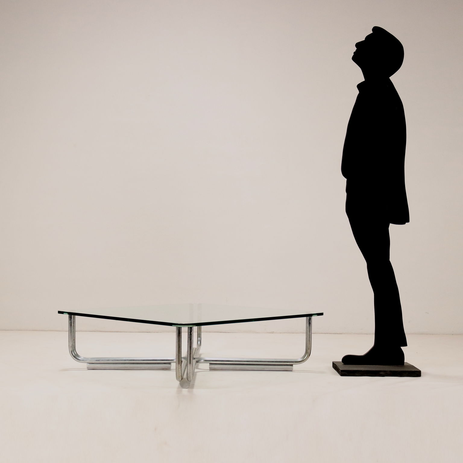 Tavolino da caffè anni '70 modello '784' con piano in vetro e base in metallo cromato. Discrete condizioni