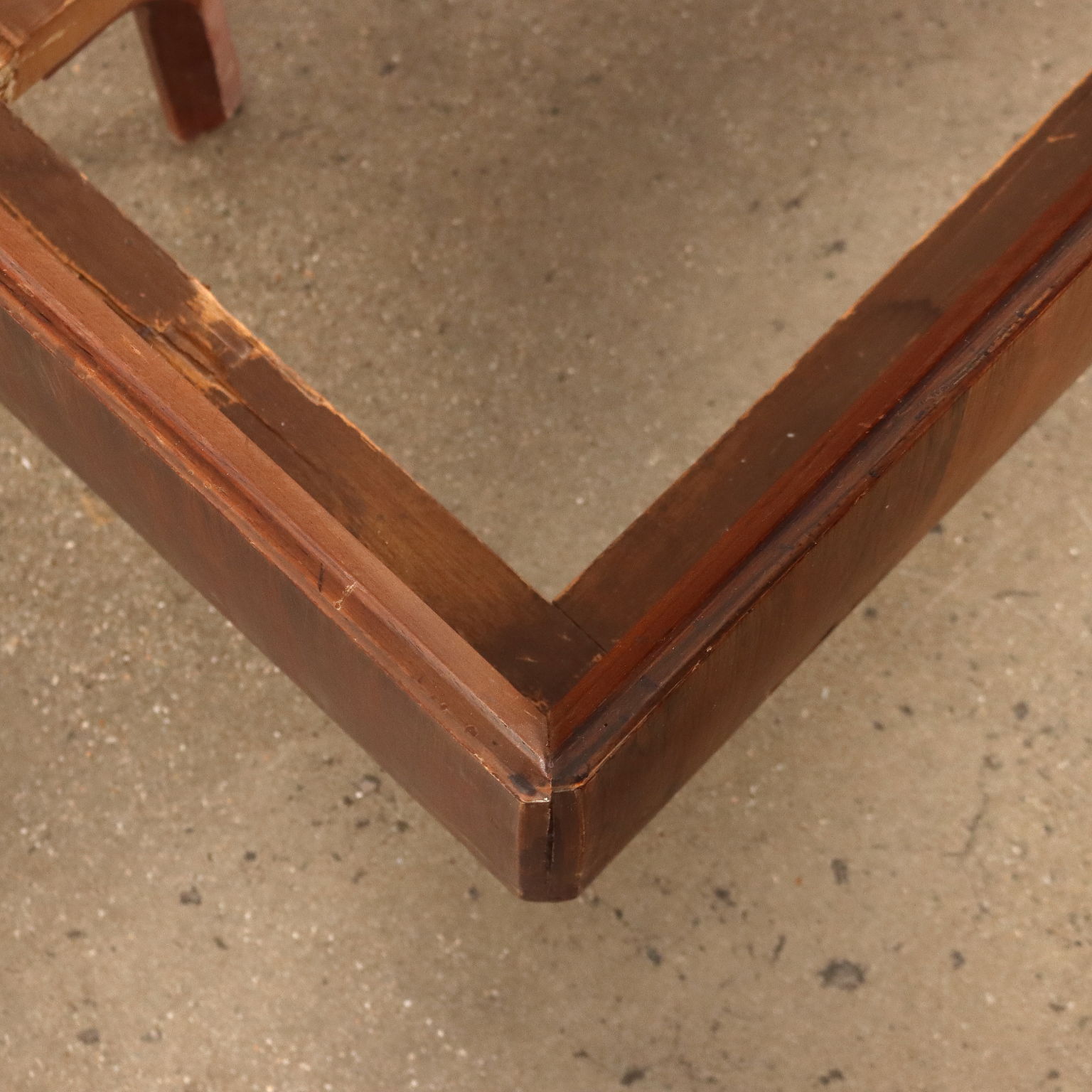 Letto matrimoniale vintage con struttura, gambe e testiera in legno.