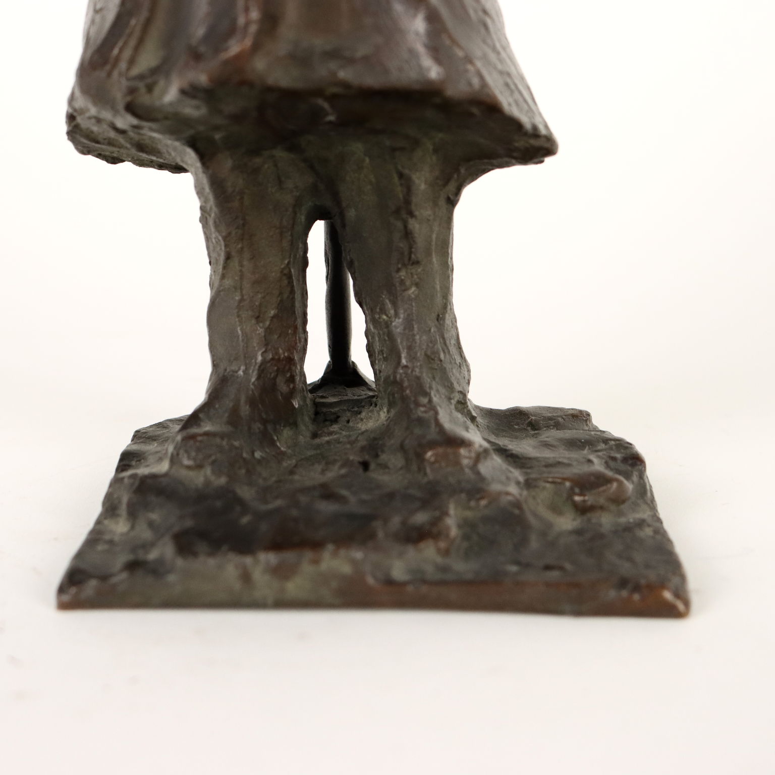 Scultura in bronzo raffigurante uomo con bastone da passeggio. Autore anonimo.