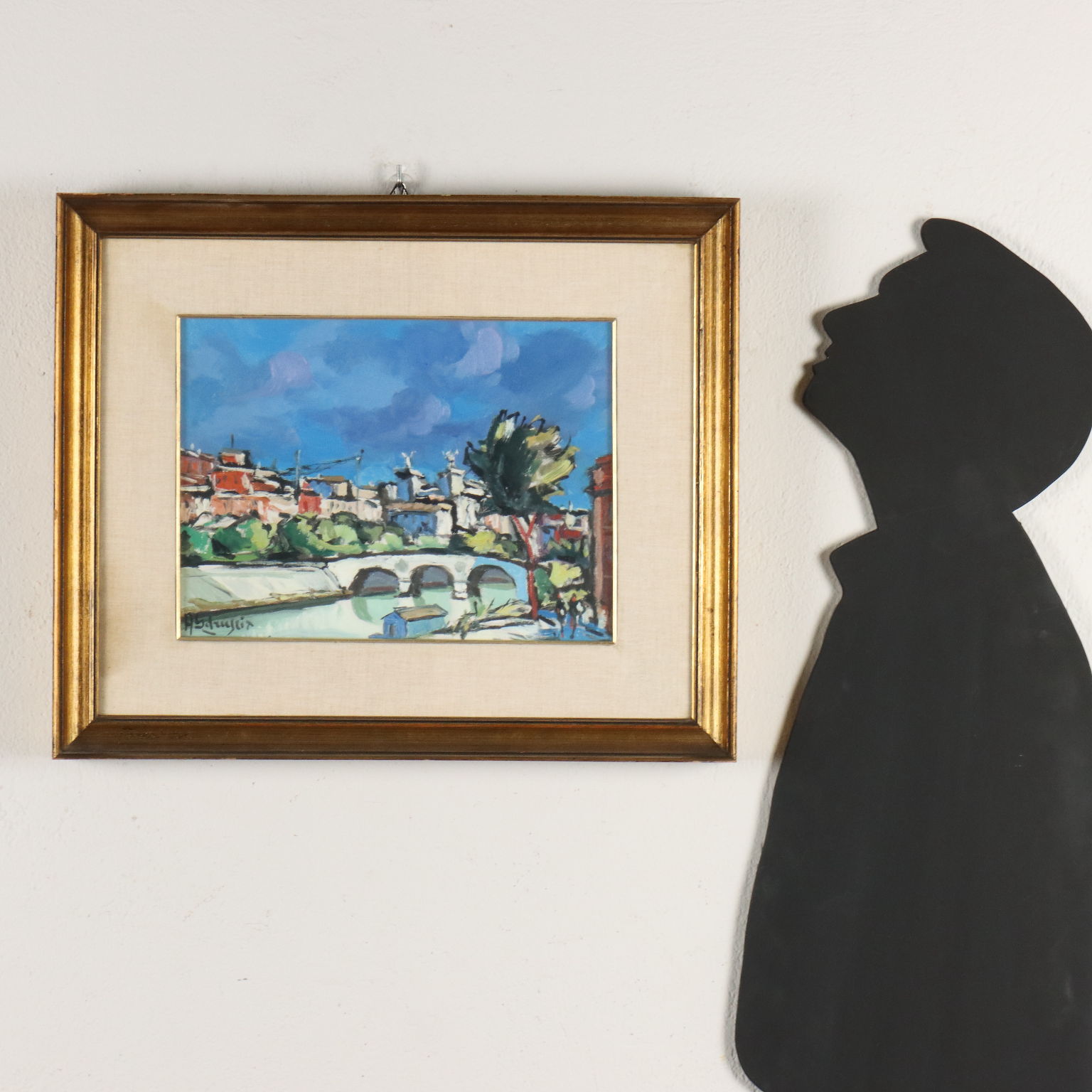 Olio su tela. firmato in basso a sinistra. Al retro ulteriore firma e il titolo. Nato e vissuto a Roma, Sdruscia fu interprete della cosiddetta Scuola romana, realizzando prevalentemente scorci della sua città, in uno stile pittorico che guarda ai grandi maestri del periodo, quali Guidi e De Pisis. L'opera è presentata in cornice.