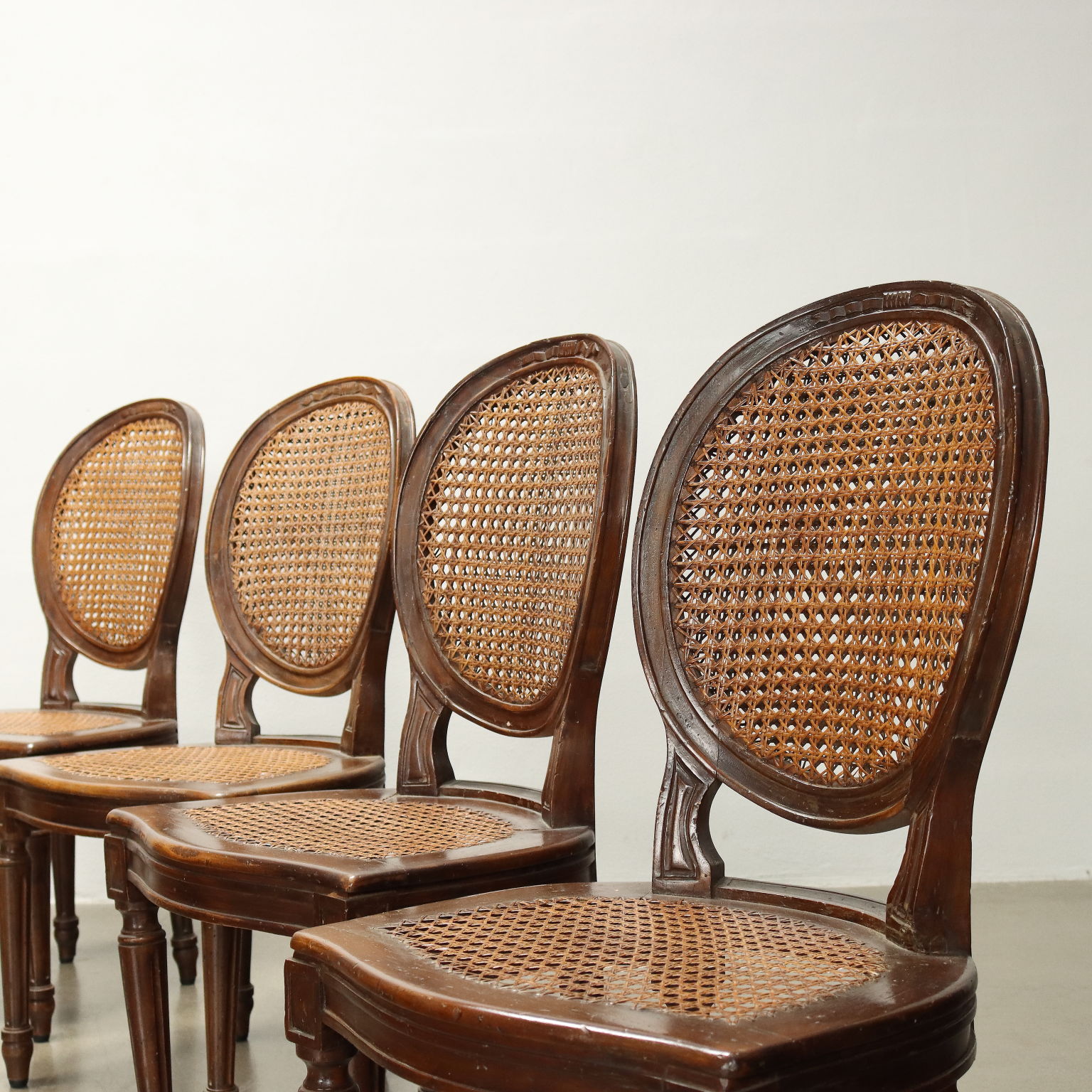 Gruppo di Sedie in Stile Neoclassico con Seduta e Schienale Incannucciati - Piacenza Inizio XX Secolo