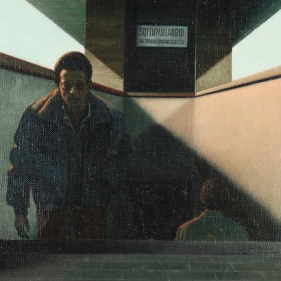 Dipinto di Angelo Titonel - Sottopassaggio ai Treni coincidenti 1980