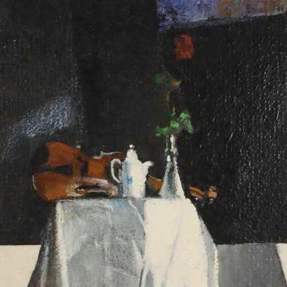 Olio su tela. Firmato in basso a destra. Al retro presenti ulteriore firma e il titolo. Gigino Falconi rappresenta uno degli ultimi artisti figurativi nel panorama dell'arte contemporanea. Falconi guarda ai grandi maestri della pittura rinascimentale, dai quali apprende una tecnica luminosa e poeticamente realistica, per rappresentare un suo mondo preciso e limpido, ma anche misterioso ed enigmatico: egli rappresenta la "bellezza" intravista nelle creature e nelle cose. L'opera è presentata in cornice.