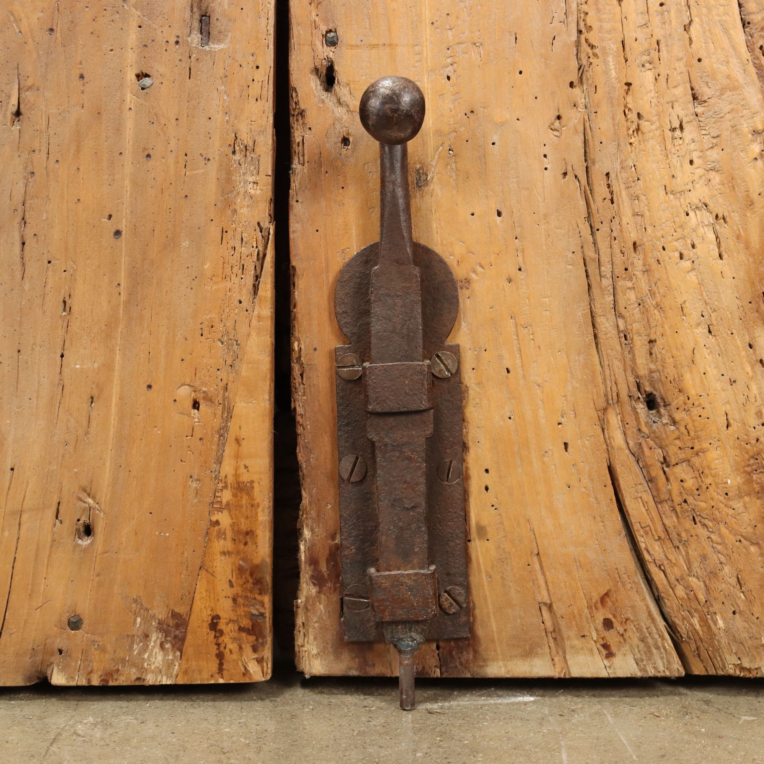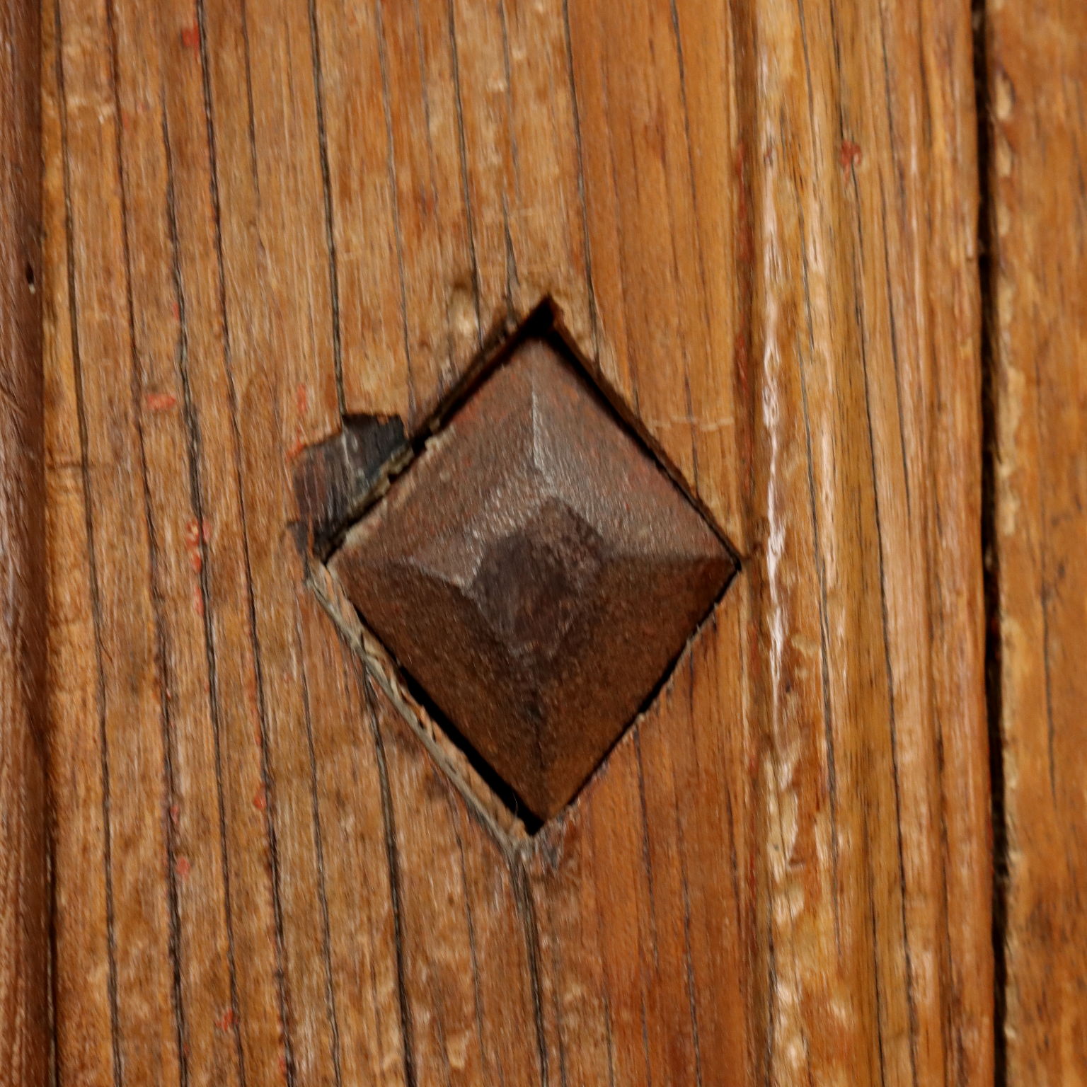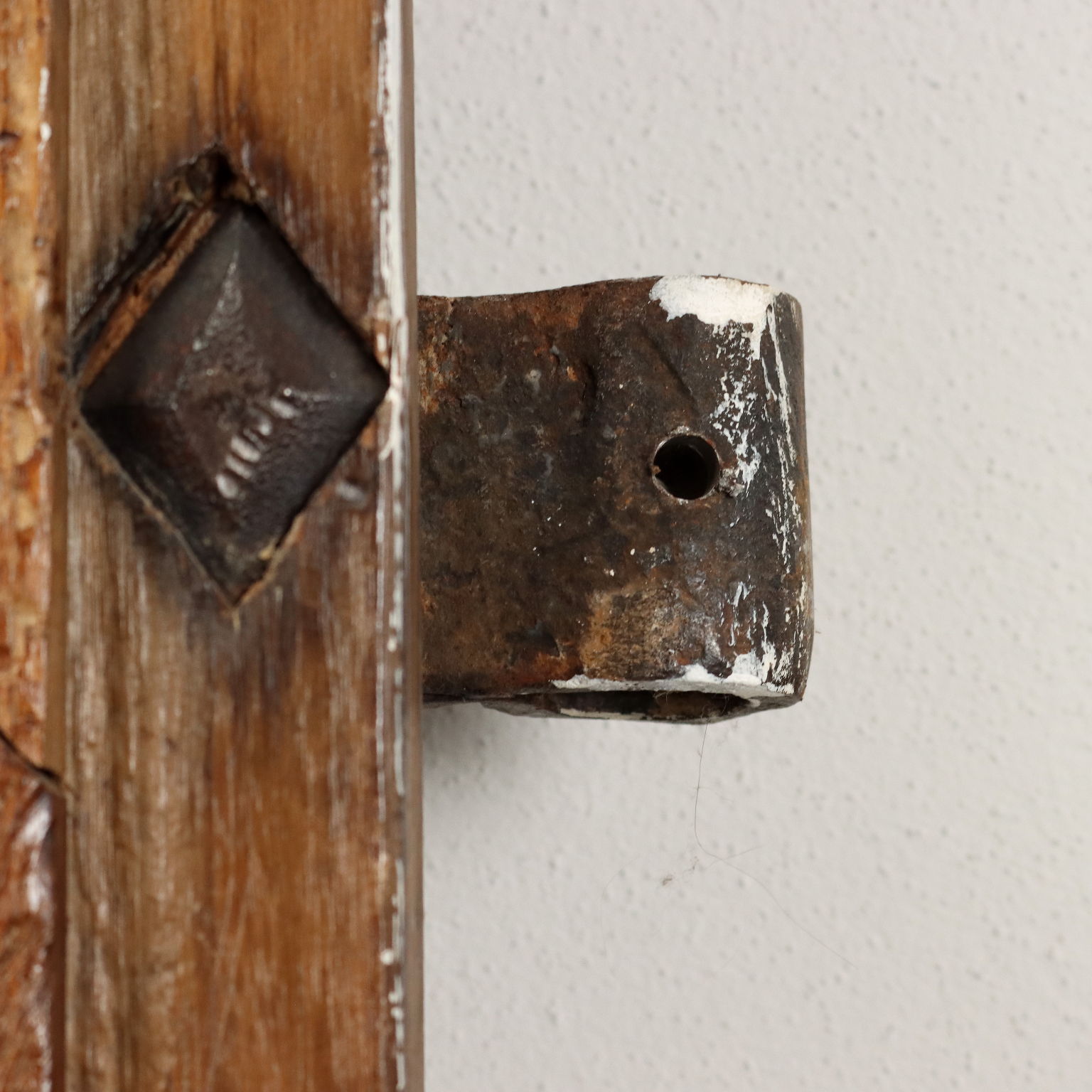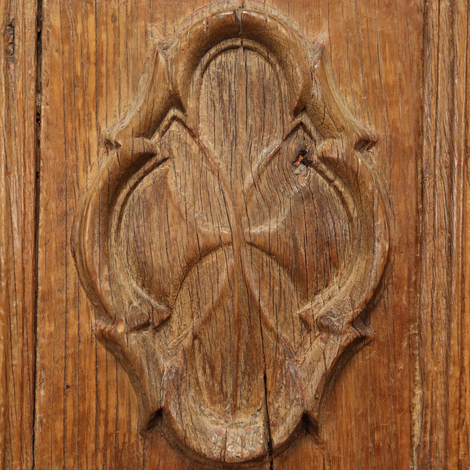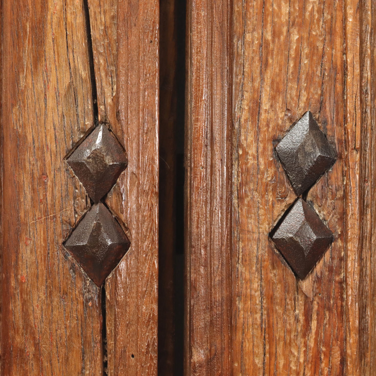 Grande portale in noce, intagliato con caratteristiche formelle a ragnatela.
