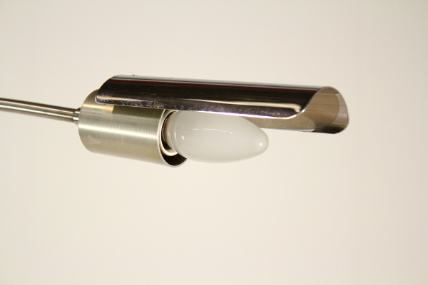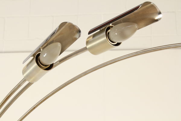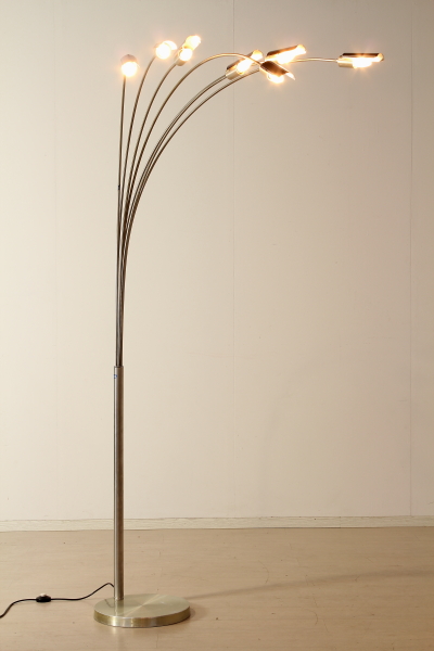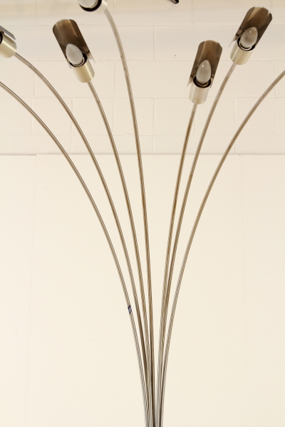 Lampada da terra Inox; 7 bracci con lampadine oliva 40w,E14. Buone condizioni, presenta piccoli segni di usura, funzionante.