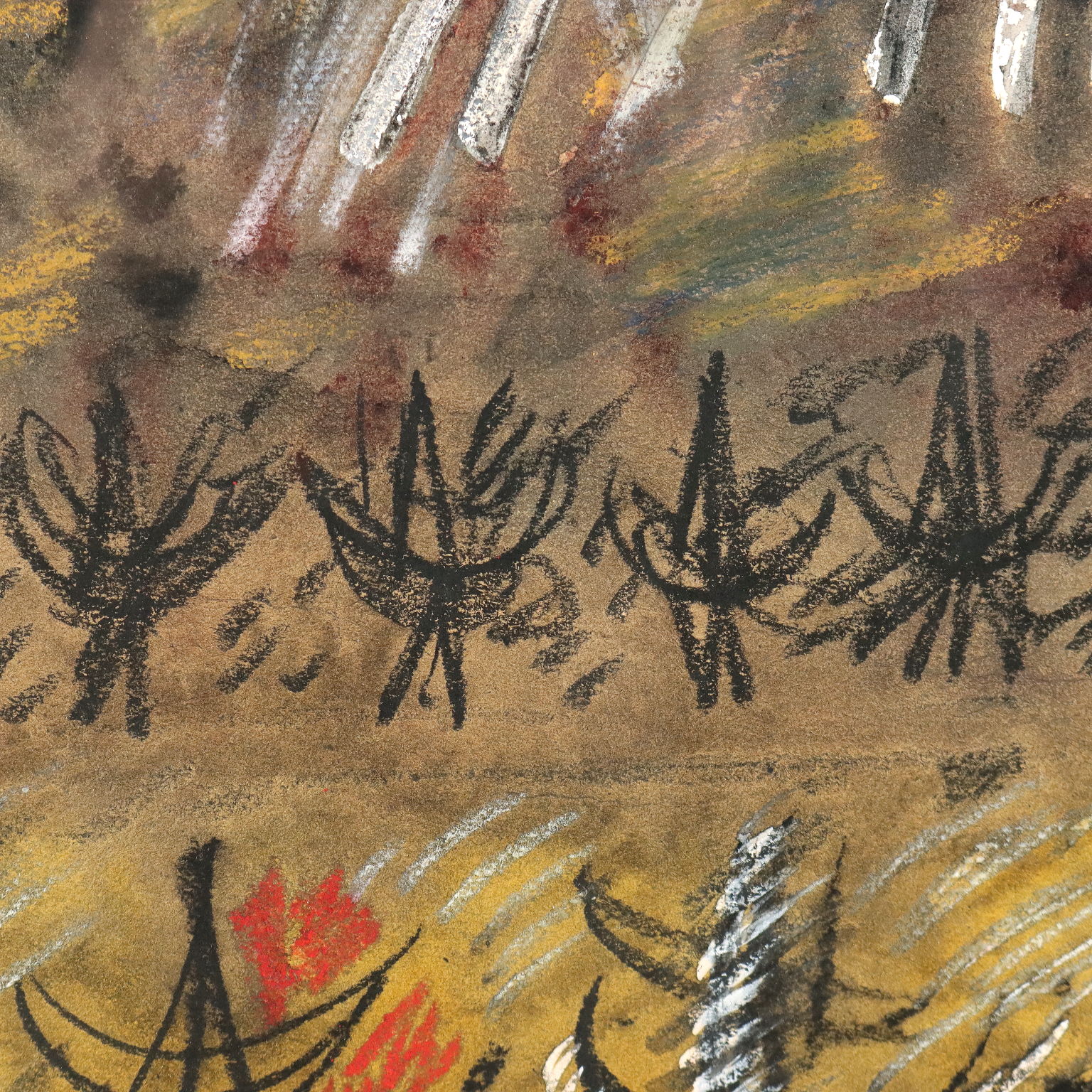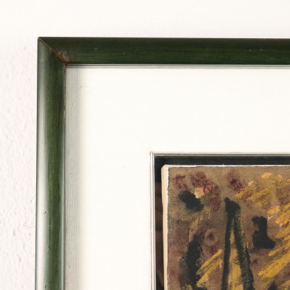 Tecnica mista su carta applicata a tela. Firmato e datato in basso a destra. Riccardo Licata, artista eclettico che si è dedicato alla pittura, all'incisione, al mosaico, alla scultura ed anche alla scenografia, ha attraversato diverse fasi di ricerca artistica ed ha saputo coniugare l'astrazione con una profonda ricerca di ritmi spaziali scanditi da segni. La sua scrittura grafico-pittorica, ispirata alla musica, ha conferito un'identità unica alle sue opere, che si distinguono per l'uso sapiente dei simboli e dei tratti grafici. L'opera è presentata in cornice.