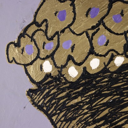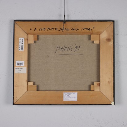 Olio, acrilico e smalto su tela. Firmato e datato al retro sulla tela; presenti inoltre sul telaio il titolo ed etichetta descrittiva con i dati dell'opera. Concetto Pozzati è stato un artista eclettico: dopo gli esordi nel clima dell'Informale, l'artista ha rielaborato in chiave personale gli influssi della Pop Art internazionale, rimanendo sempre legato ad una figurazione semplificata, ironica, con atmosfere surrealiste. L'opera presentata è riconducibile al periodo artistico del Pozzati degli anni '80, '90 e 2000, caratterizzato da una pittura densa e carnosa che registra l'interesse dell'artista per gli oggetti del quotidiano e d'affezione; appartiene alla serie intitolata "A che punto siamo con i fiori", che propone mazzi di fiori allestiti in modi differenti, realizzati con una tecnica mista ove i diversi materiali pittorici si sovrappongono a dare consistenza materica agli elementi dipinti. In cornice.