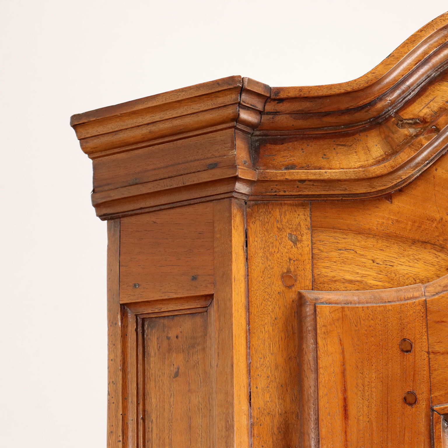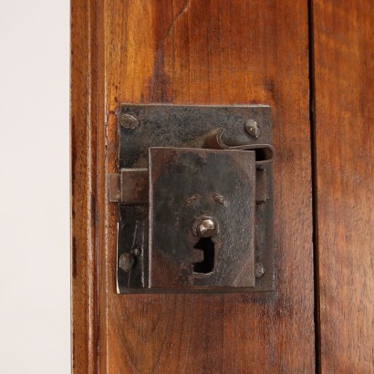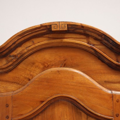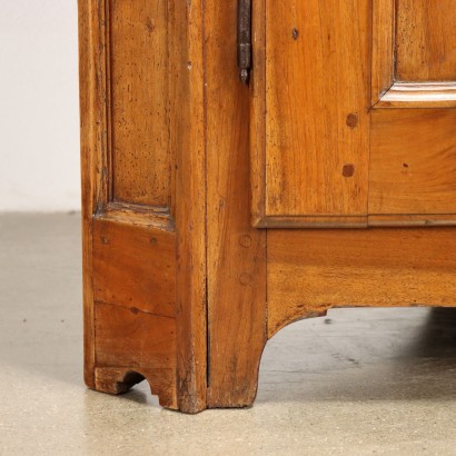 Angoliera in noce con cimasa con piccolo intaglio geometrico decorativo, fronte con 2 ante recanti bordure sagomate e cassetto centrale. Sostituzione schienale. Italia seconda metà XVIII secolo