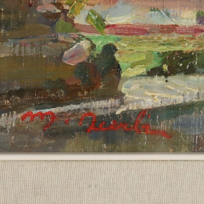 Olio su cartone. Firmato in basso a sinistra. Mario Acerbi, figlio del pittore pavese Ezechiele, sui dedicò ad una pittura verista di matrice impressionista, in cui il colore gioca il ruolo principale associato ad una sapiente capacità di modulazione della luce. La sua produzione paesaggistica, come quella paterna, guarda soprattutto alla città e alla campagna pavese, suoi luoghi d'origine e di vita. Il dipinto è presentato in cornice.