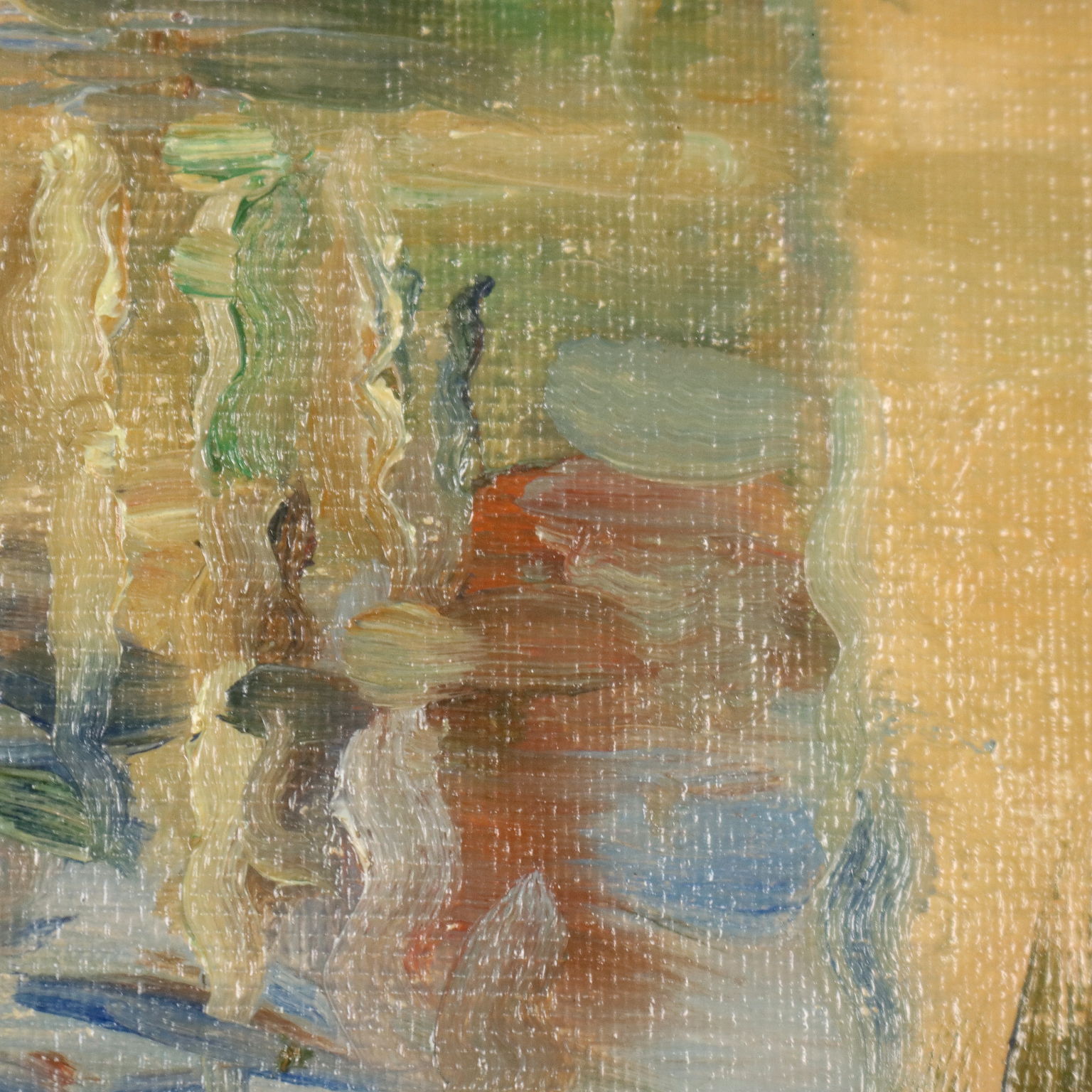 Olio su cartone. Firmato in basso a destra. Mario Acerbi, figlio del pittore pavese Ezechiele, sui dedicò ad una pittura verista di matrice impressionista, in cui il colore gioca il ruolo principale associato ad una sapiente capacità di modulazione della luce. La sua produzione paesaggistica, come quella paterna, guarda soprattutto alla città e alla campagna pavese, suoi luoghi d'origine e di vita. Il piccoloscorcio pavese è presentato in cornice.