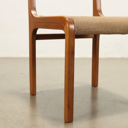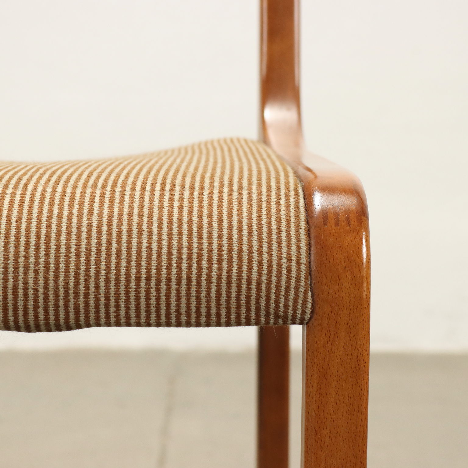 Gruppo 8 sedie, legno di Faggio, seduta in espanso, rivestimento in tessuto. Discrete condizioni, sedute da rivedere. (Sedie che si prestano ad essere personalizzate con intervento di restauro che prevede, ripresa della lucidatura parte lignea e la sostituzione dell'imbottitura e del rivestimento scegliendo tra le nostre diverse campionature, così da renderle adatte ad un ambiente Living con uno stile Vintage, e per dare nuova vita alle cose)