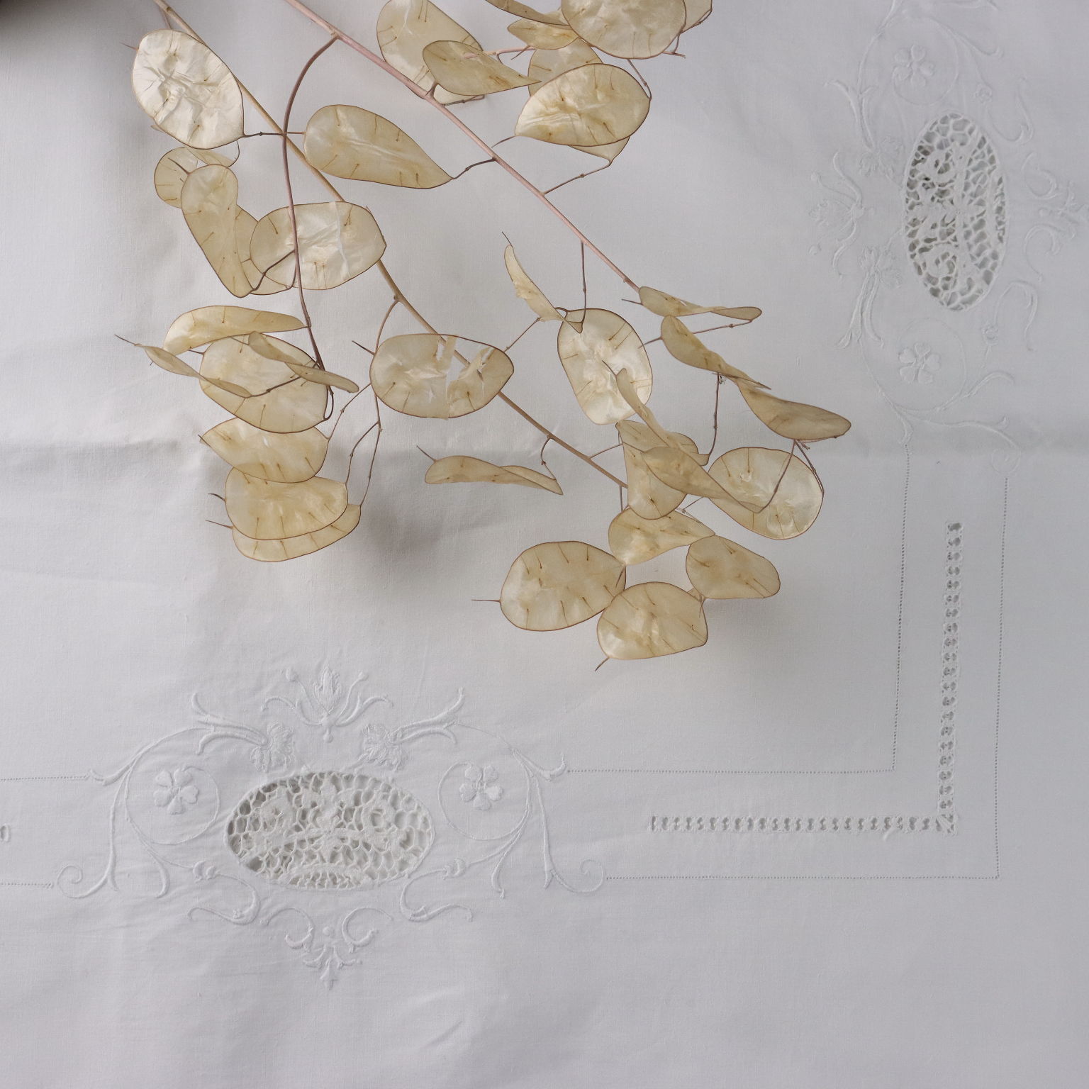 Matrimoniale con due federe Molto elegante la reversina ricamata in punto ago e punto pieno che dona rilievo al ricamo con bordo orlo a giorno Piccole imperfezioni sulle federe Colore bianco Composizione lino Dimensioni Lenzuolo cm 280 x cm 268 Federe cm 85 x cm 52