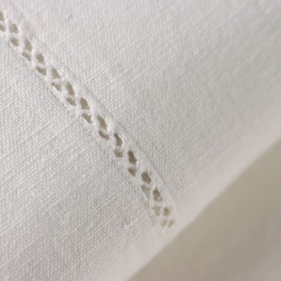 Matrimoniale completo di due federe Semplice la rovescina cifrata "SP" ricamata in punto pieno con orlo a giorno Le due federe con allacciatura a bottoni tipiche del periodo Colore bianco Composizione lino Dimensioni Lenzuolo cm 240 x cm 232 Federe cm 80 x cm 50