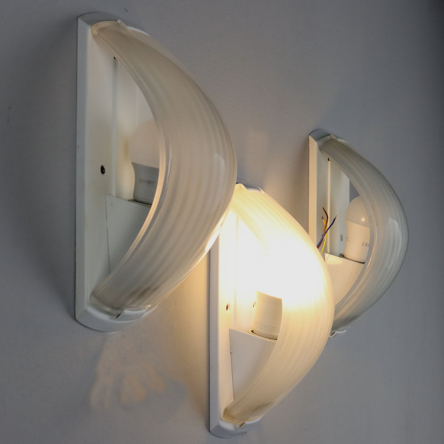 Gruppo di 3 lampade a parete, alluminio smaltato, vetro.