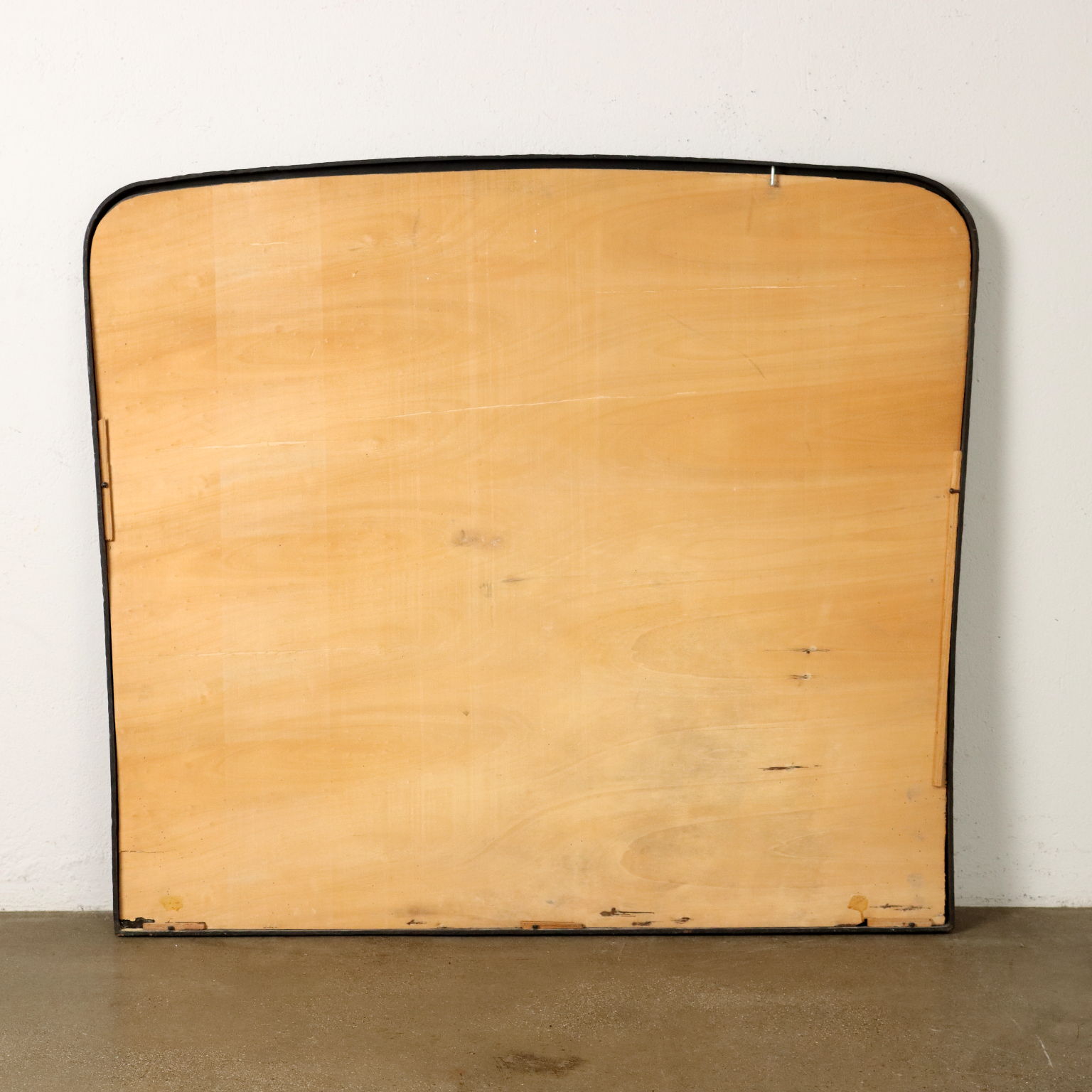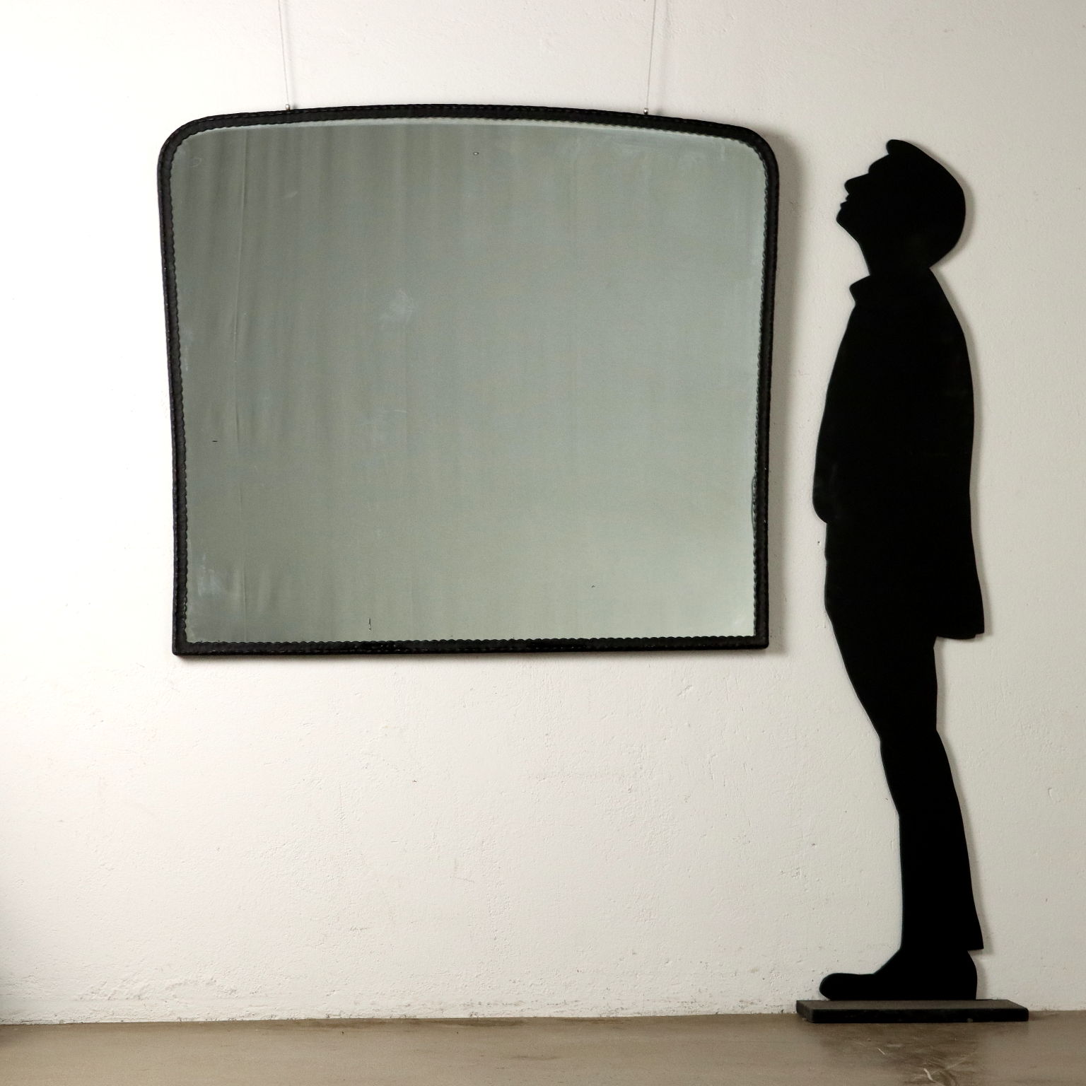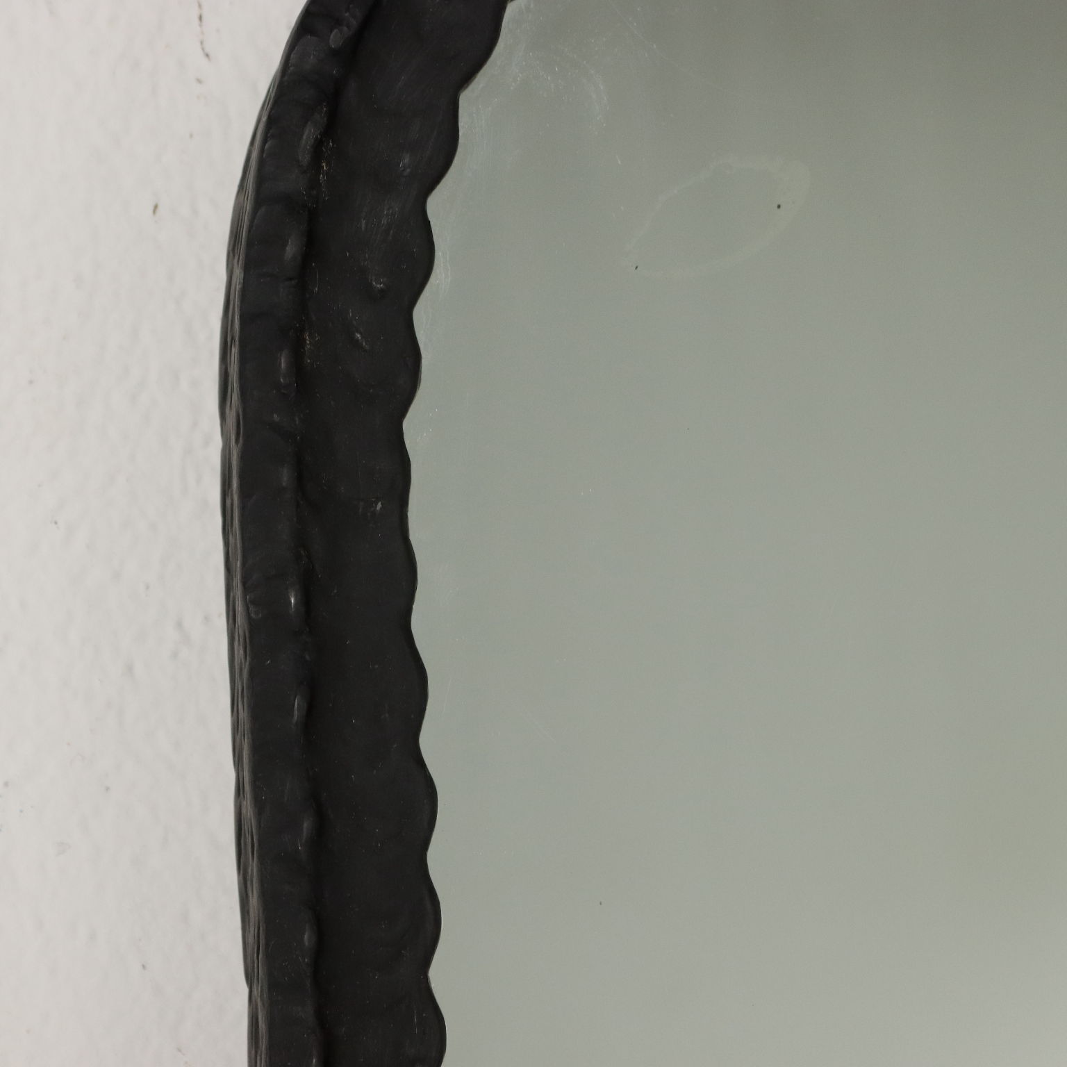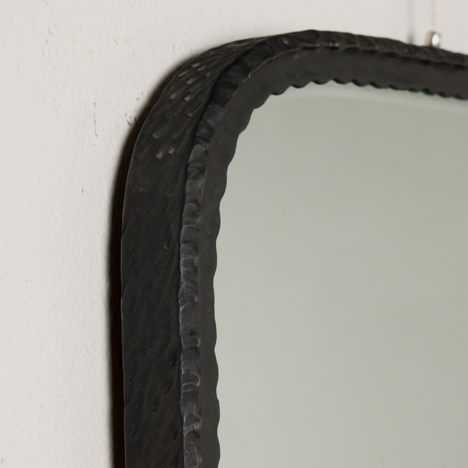 Specchio da parete, vetro specchiato e cornice in ferro battuto.