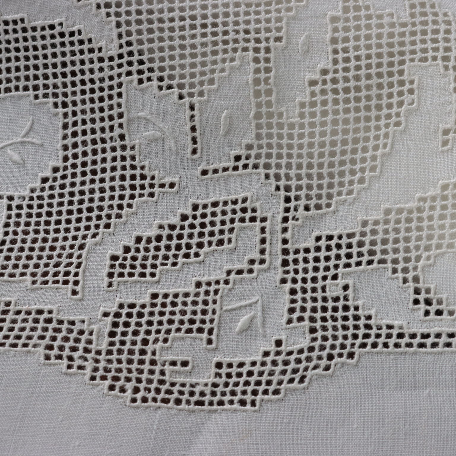 Completo matrimoniale con due federe Incantevole la reversina con importante ricamo in sfilato siciliano a tema floreale Buone condizioni Colore bianco Composizione lino Dimensioni Lenzuolo cm 260 x cm 235 Federe cm 77 x cm 44
