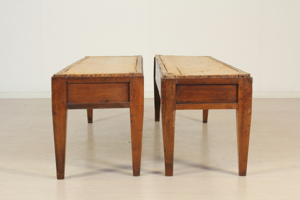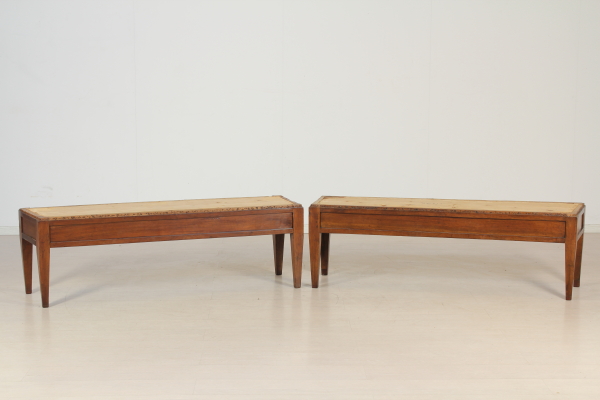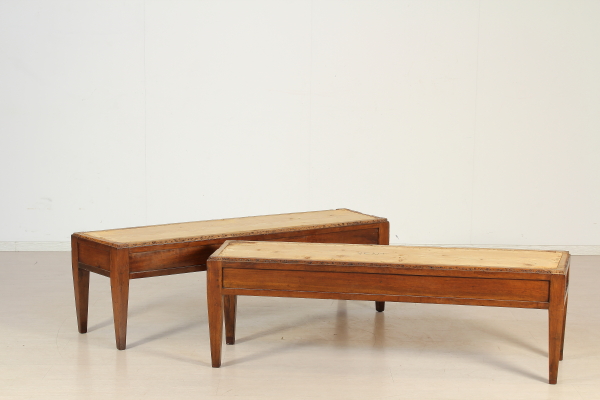 Panche scantonate rette da gambe tronco-piramidali, imbottiture mancanti.