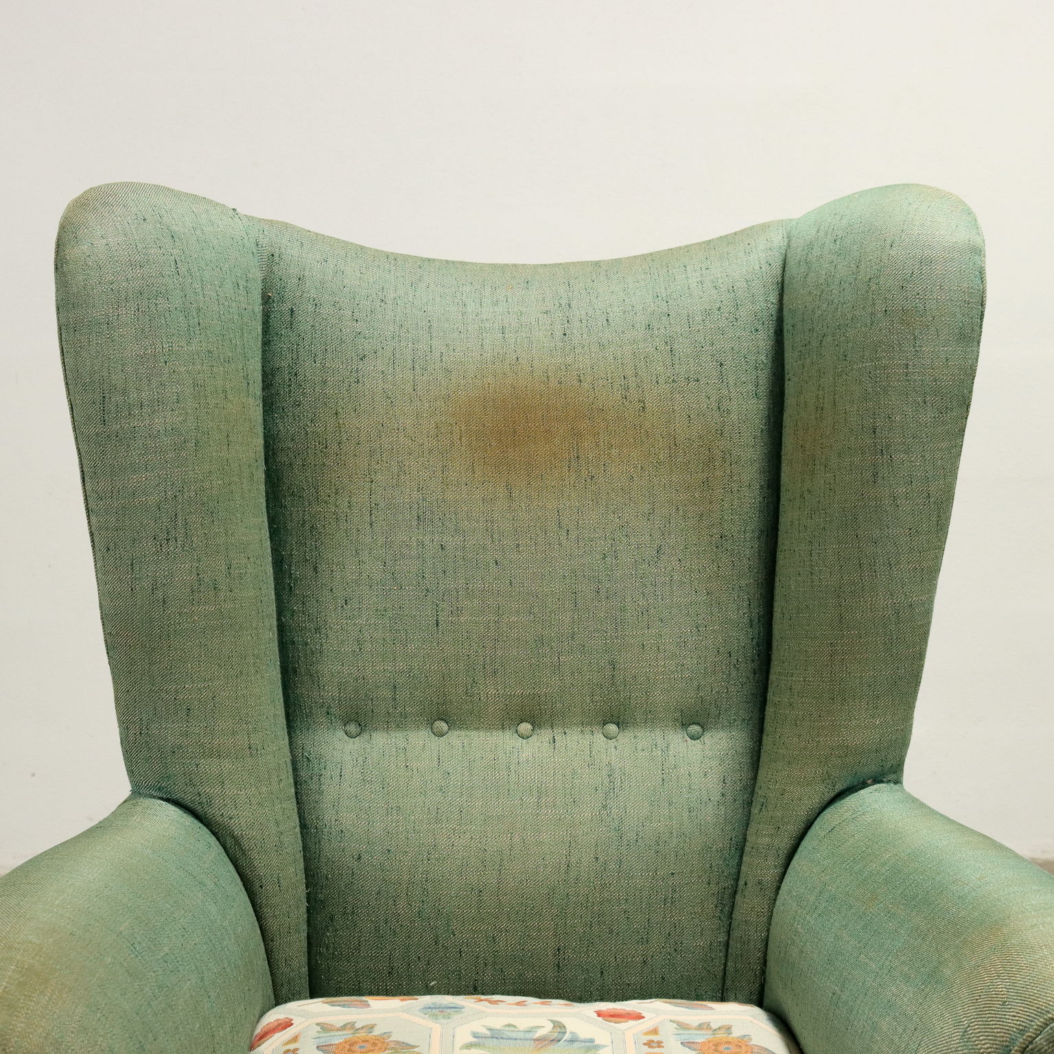 Poltrona con imbottitura a molle e cuscino di seduta in piuma. Il rivestimento è in tessuto. Una Poltrona da rivisitare per renderla adatta ad un ambiente con una zona relax che voglia riprendere uno stile originale con un gusto di altri tempi, il prodotto può essere restaurato dal nostro laboratorio, con intervento che prevede, la sistemazione dell'imbottitura e la sostituzione del tessuto scegliendo tra le nostre diverse campionature.