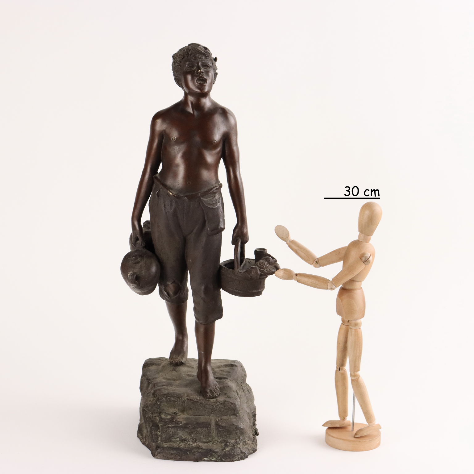 Scultura in bronzo raffigurante acquaiolo. Sulla base firma incussa dell'autore.